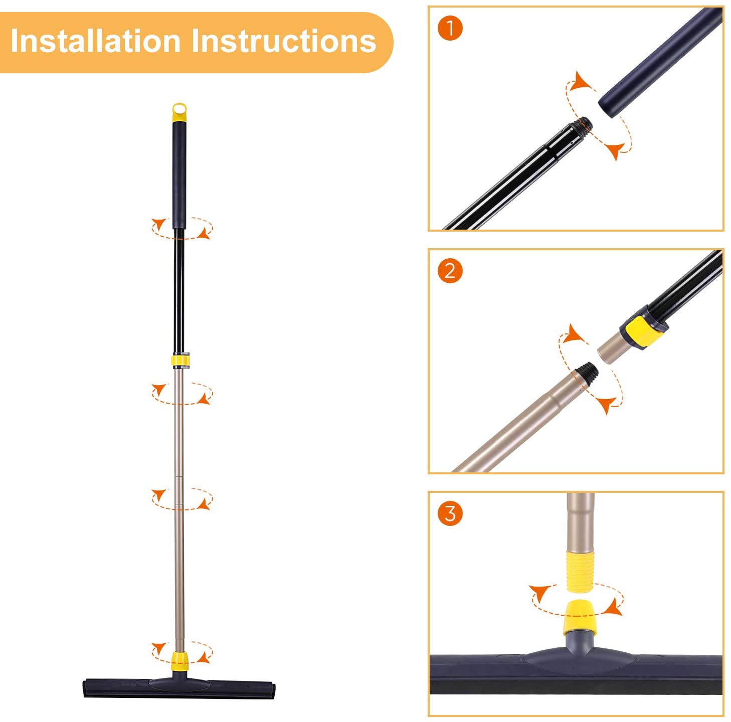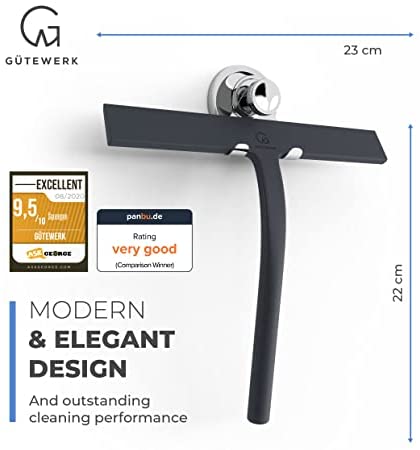 GÜTEWERK Shower Squeegee Black 9 in - incl. Chrome Suction Cup Hook