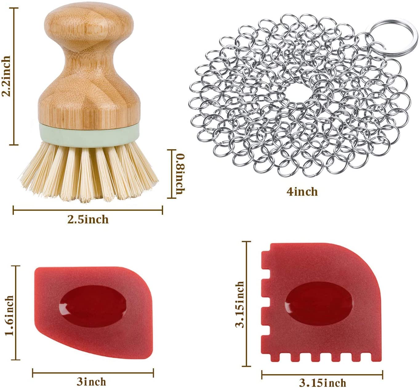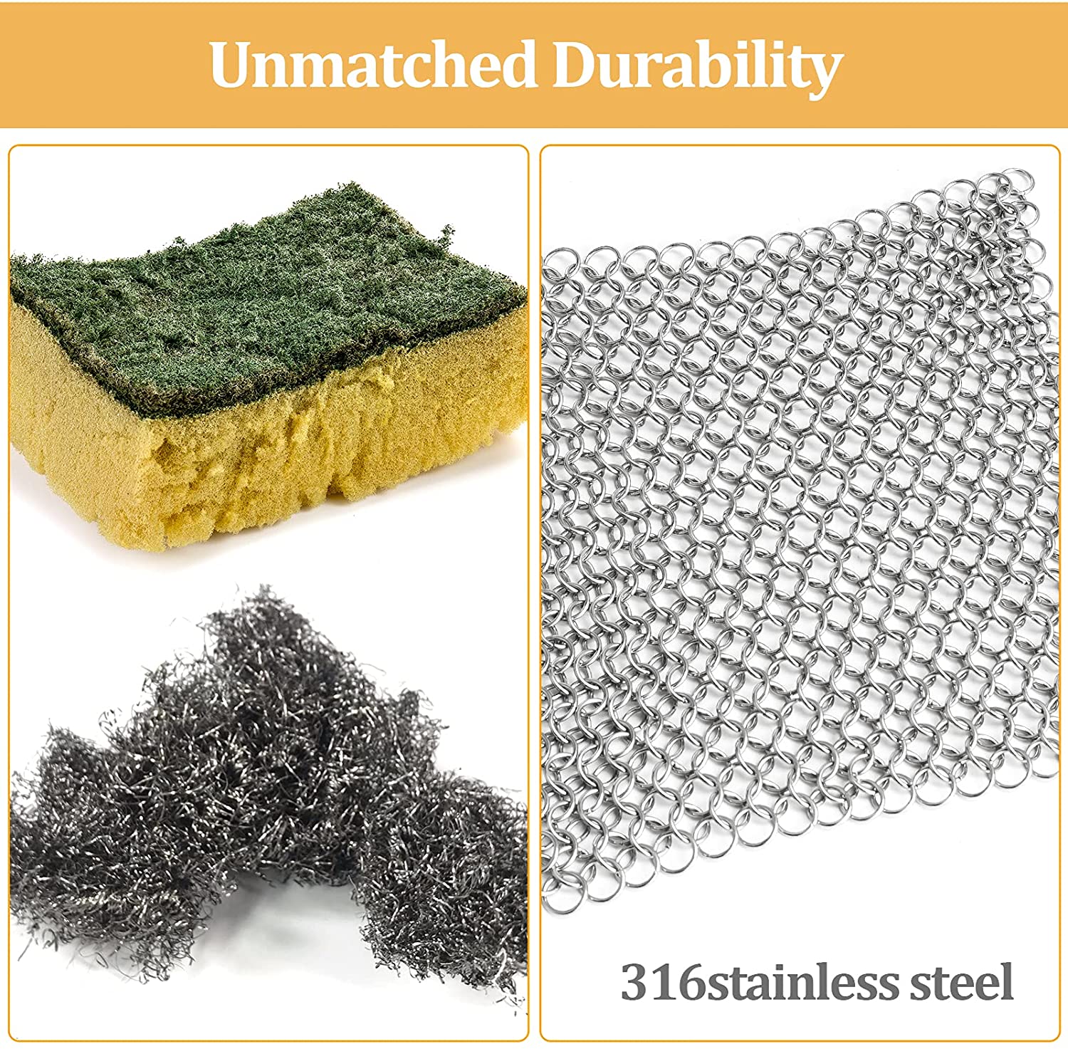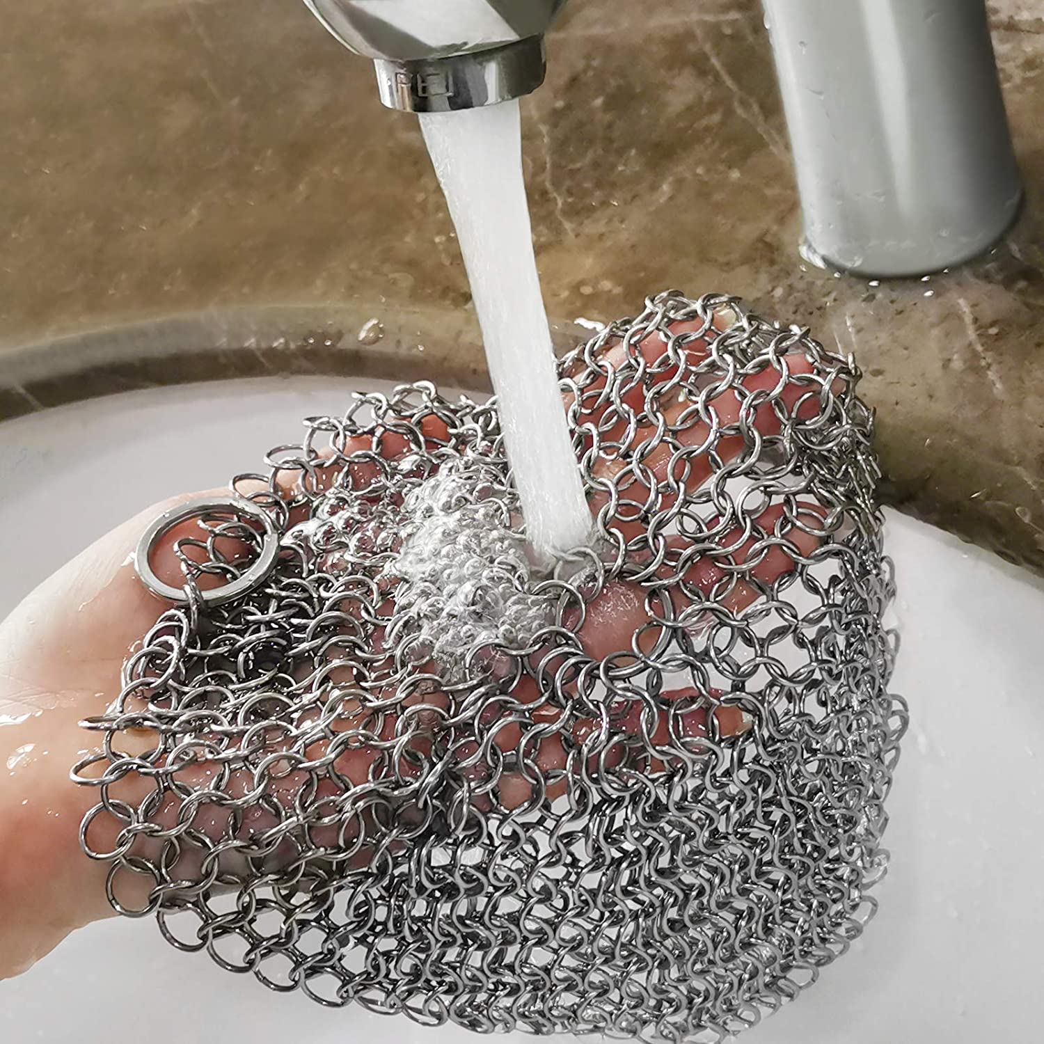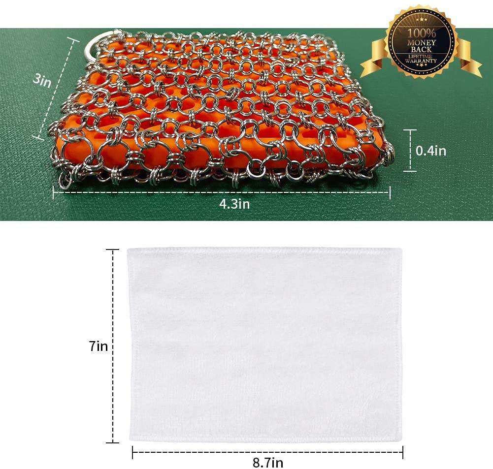 Herda Cast Iron Skillet Scrubber. Chainmail Scrubber Cast Iron Cleaner Set 316 Stainless Steel