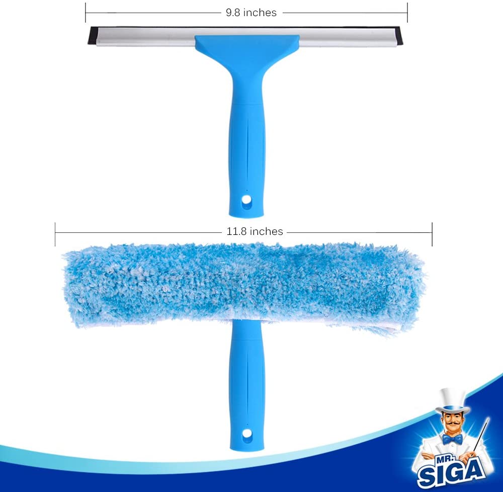 MR.SIGA Professional Window Cleaning. Squeegee & Microfiber Window Scrubber. 10″