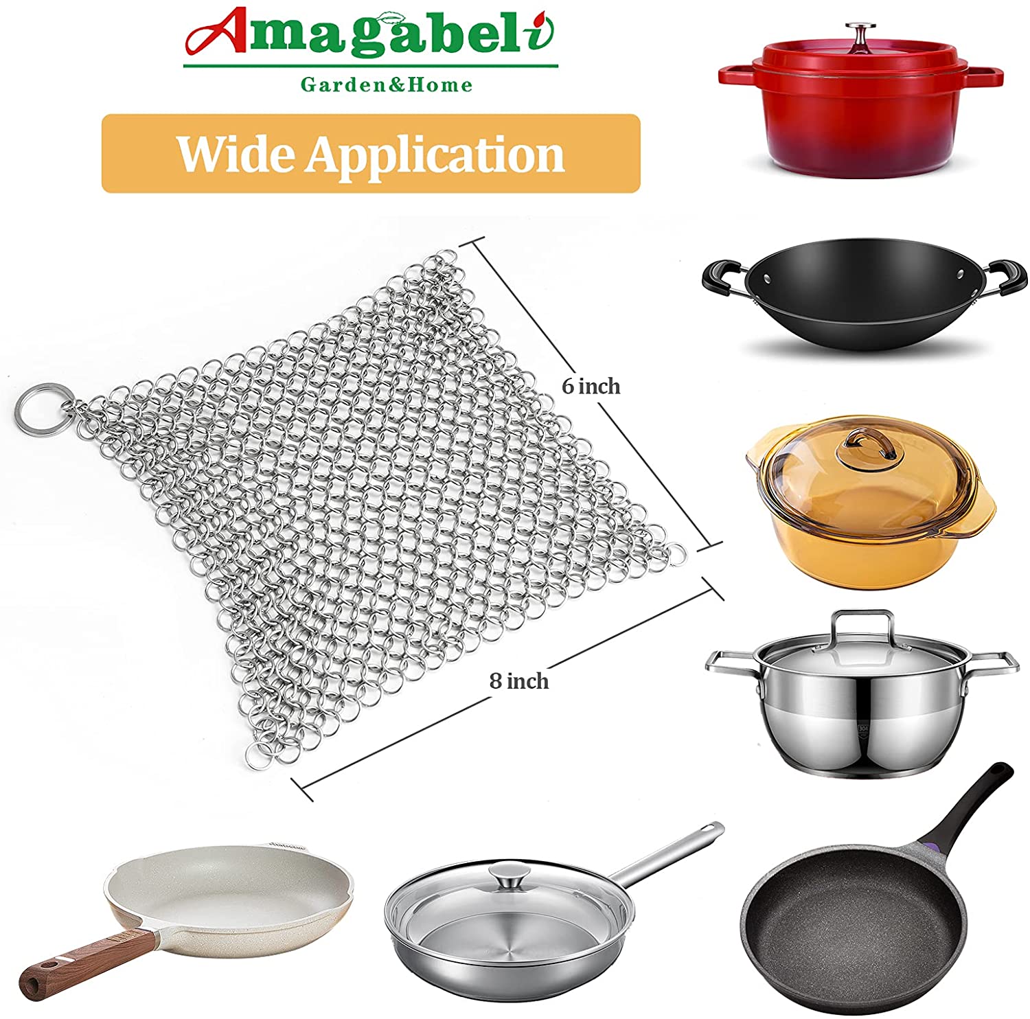 Amagabeli 8″x6″ Cast Iron Cleaner 316 Premium Stainless Steel Cast Iron