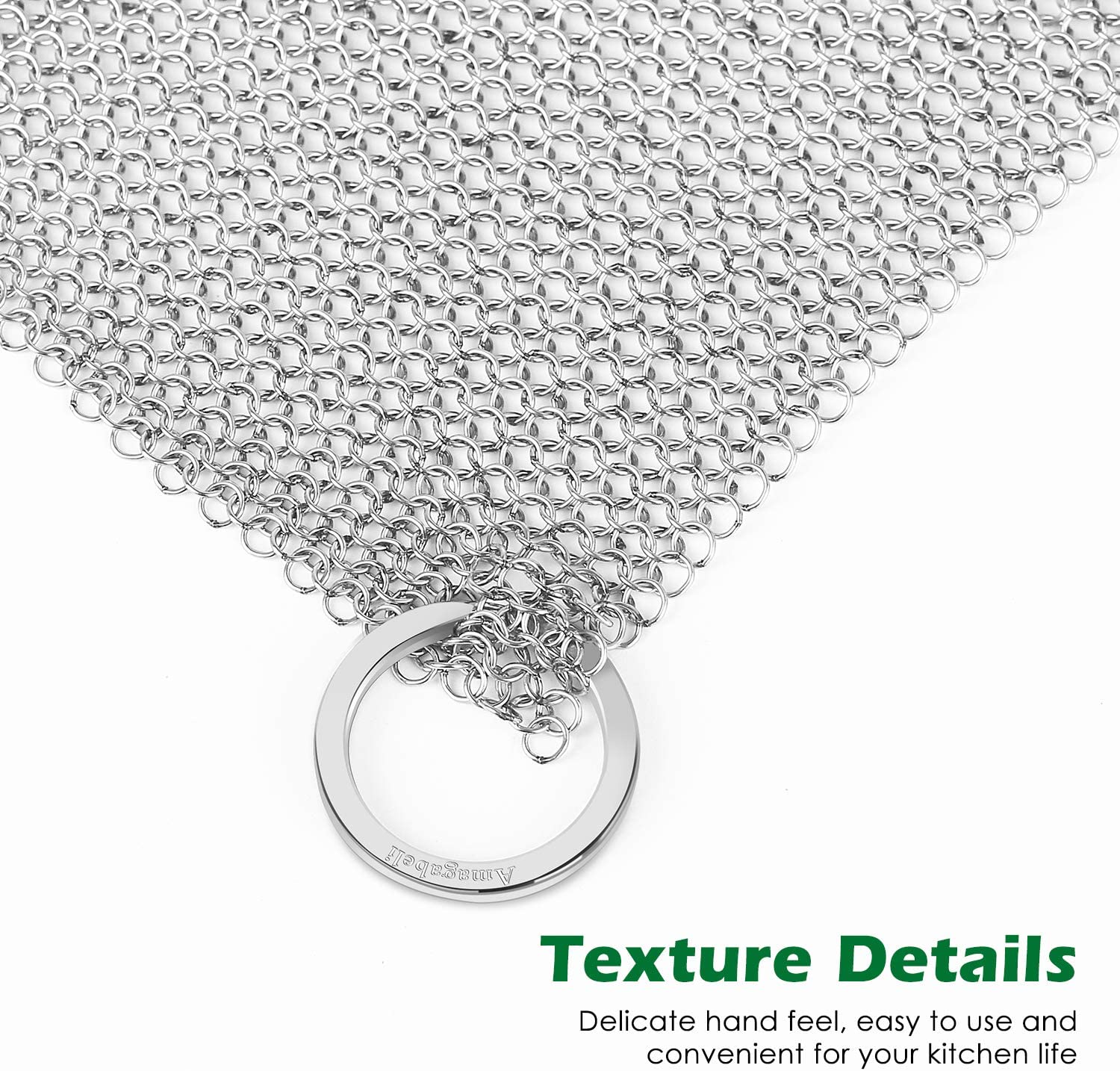 Amagabeli 10x10 Cast Iron Cleaner Mesh Premium 316 Stainless Steel Small Rings