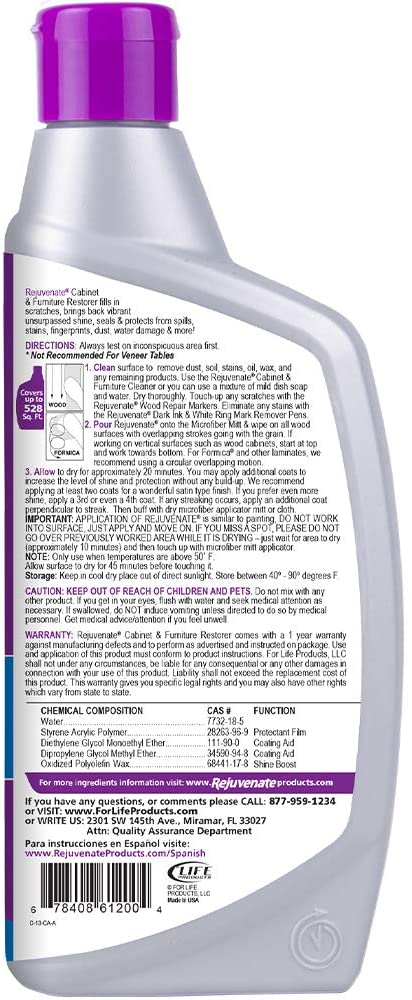 Rejuvenate Cabinet & Furniture Restorer Fills in Scratches Seals 13oz
