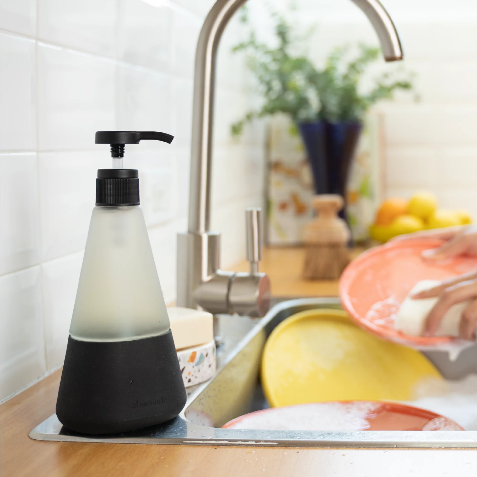 Cleancult Dish Soap Dispenser with Pump. Refillable Glass 14 oz Container. Shatter Resistant. Liquid Dishwashing Detergent. Non-Slip Grip Matte Clear Frosted Finish. Kitchen Sink. 2 Pack - Matte Black