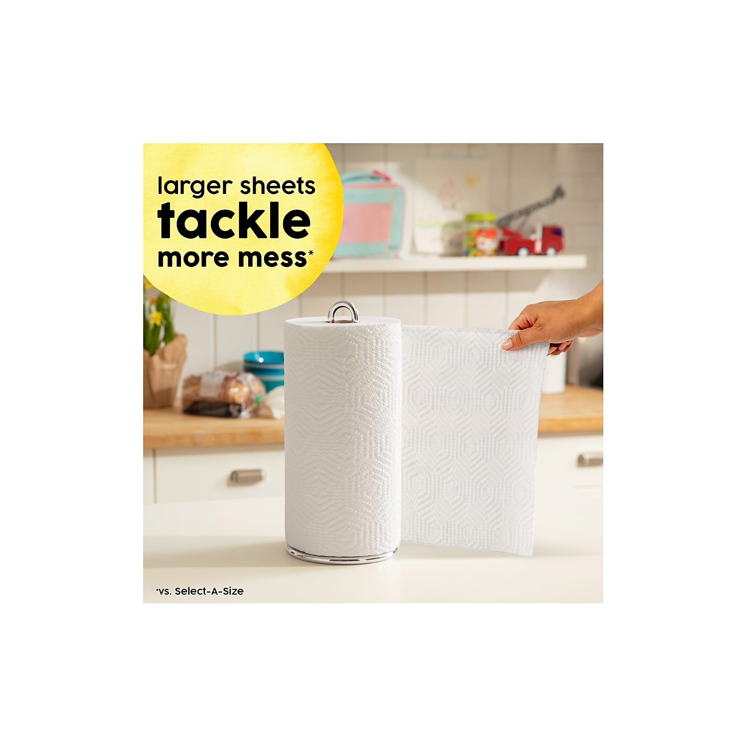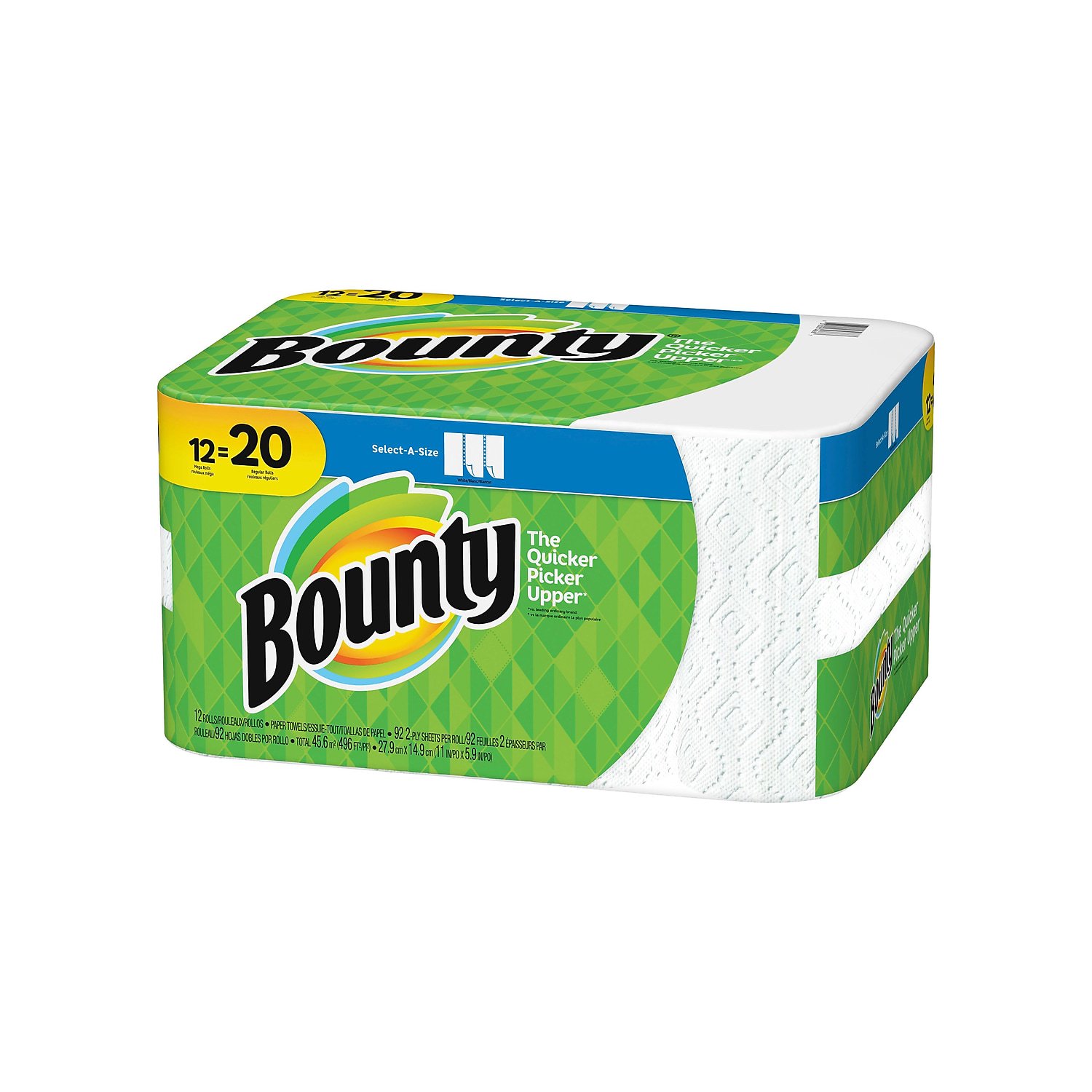 Bounty Select-A-Size 2-Ply Paper Towels. 11″ x 5-15/16″. White. 98 Sheets Per Roll. 2 Rolls Per Pack. Carton Of 12 Packs