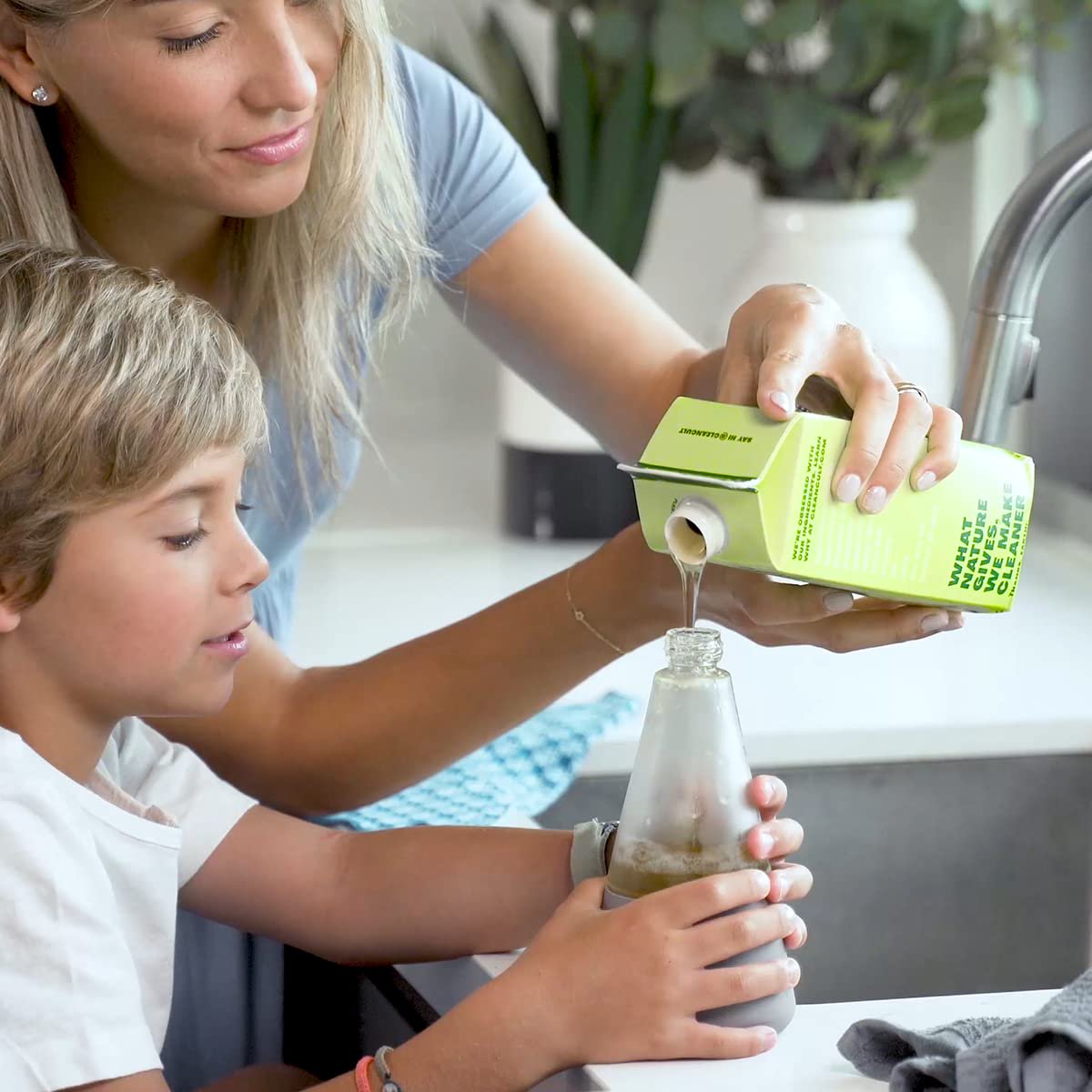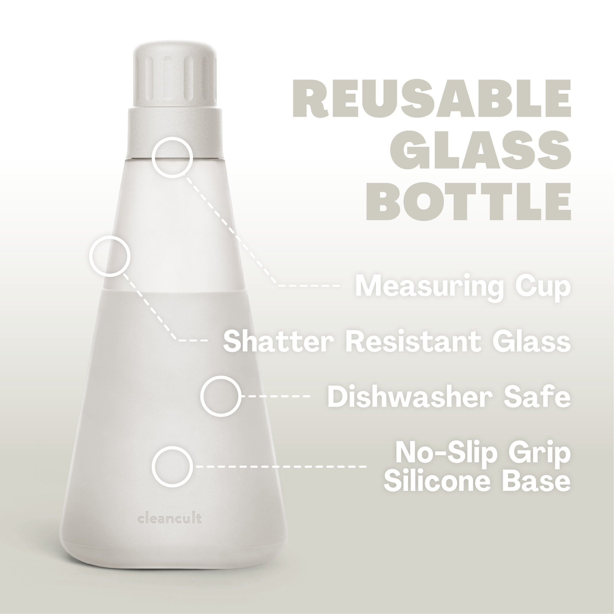 Cleancult Glass Liquid Laundry Detergent Dispenser. 20 oz. Empty. Refillable and Reusable Glass Container. 2 Pack - Stone