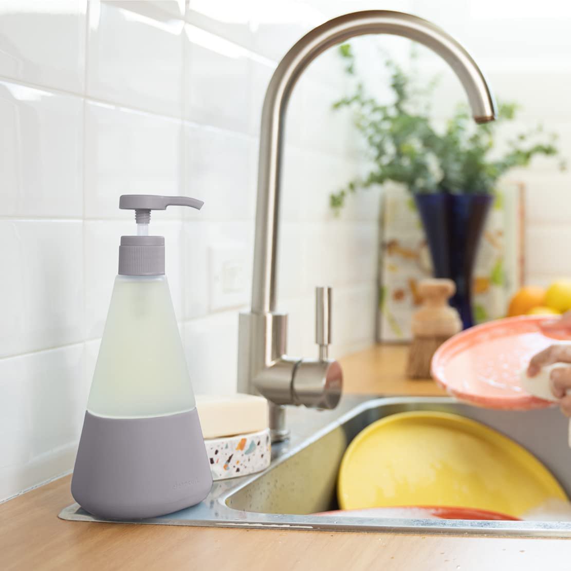 Cleancult Dish Soap Dispenser with Pump. Refillable Glass 14 oz Container. Shatter Resistant. Liquid Dishwashing Detergent. Non-Slip Grip. Matte Clear Frosted Finish. Kitchen Sink. 2 Pack - Stone