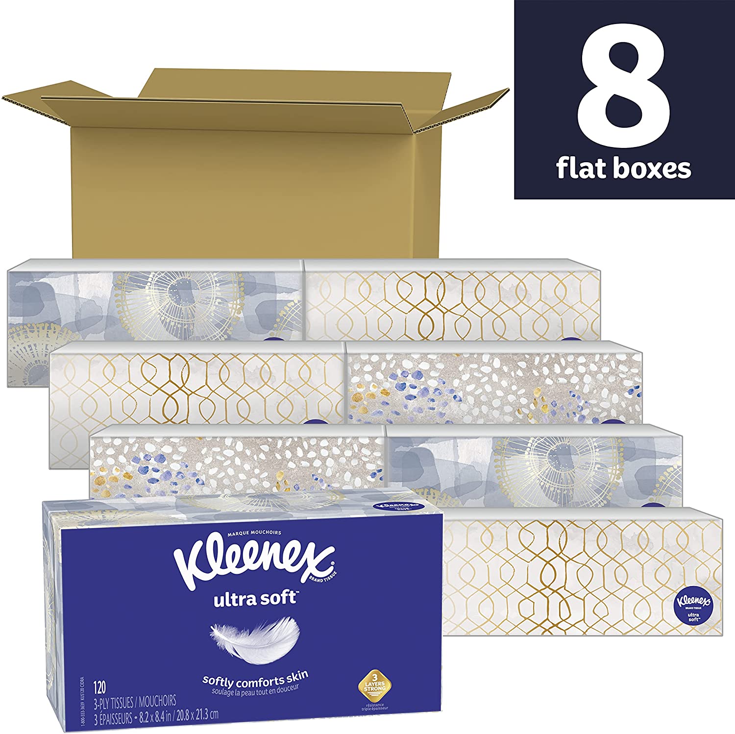 Kleenex Ultra Soft Facial Tissues. 8 Flat Boxes. 120 Tissues per Box
