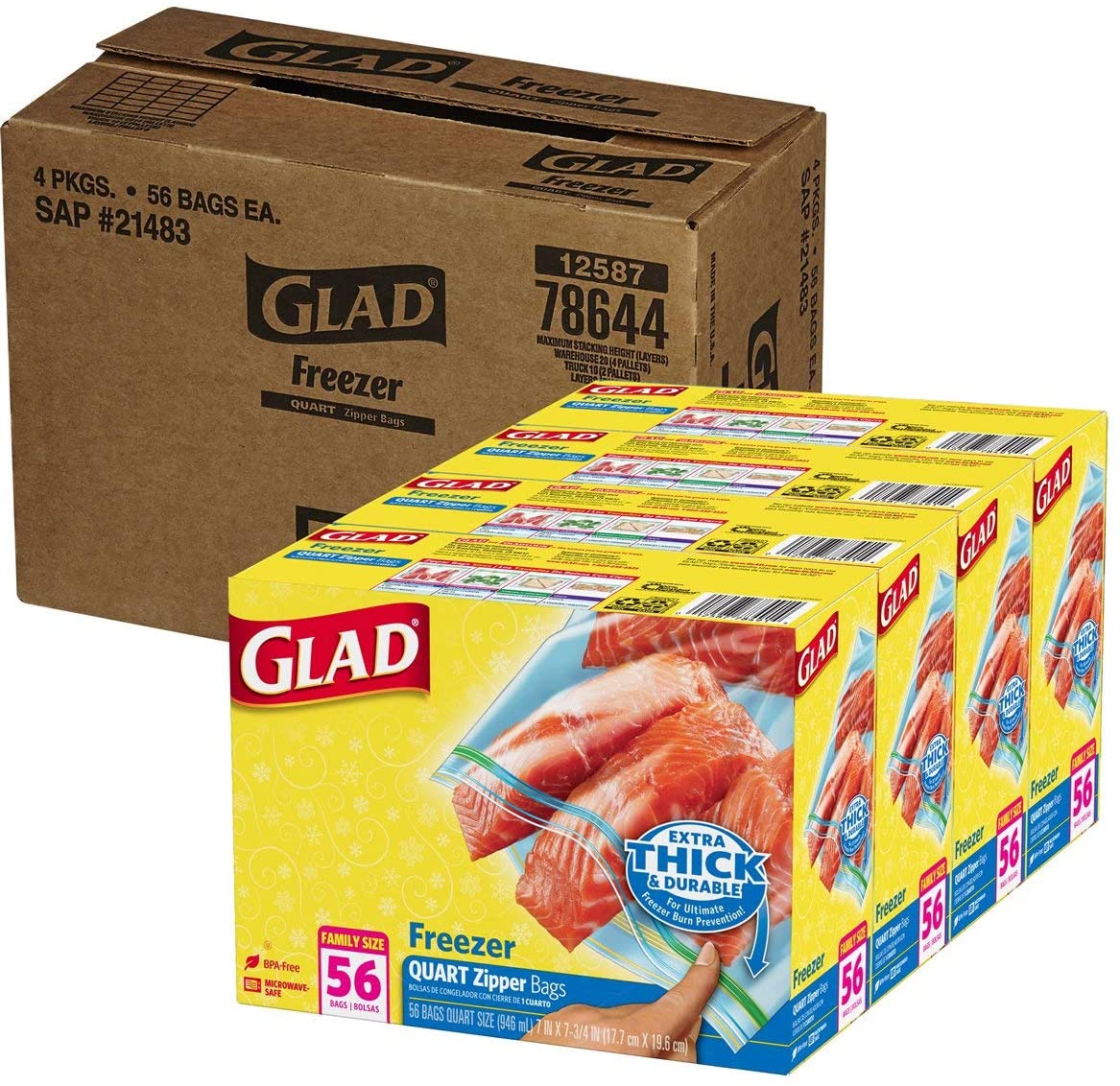 Glad Zipper Food Storage Freezer Bags - Quart Size - 56 Count Each 4 Pack