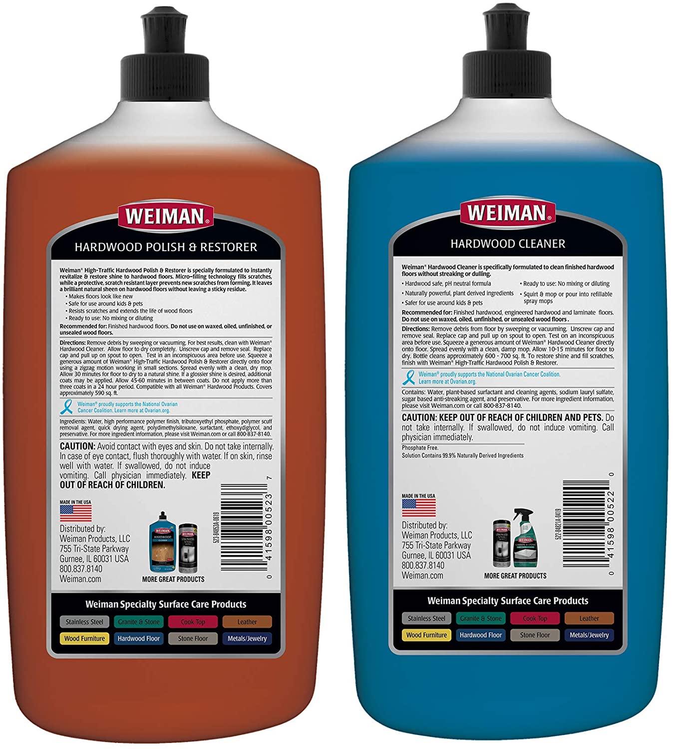 Weiman Hardwood Floor Cleaner and Polish - 128 Oz Cleaner and 32 Oz Polish