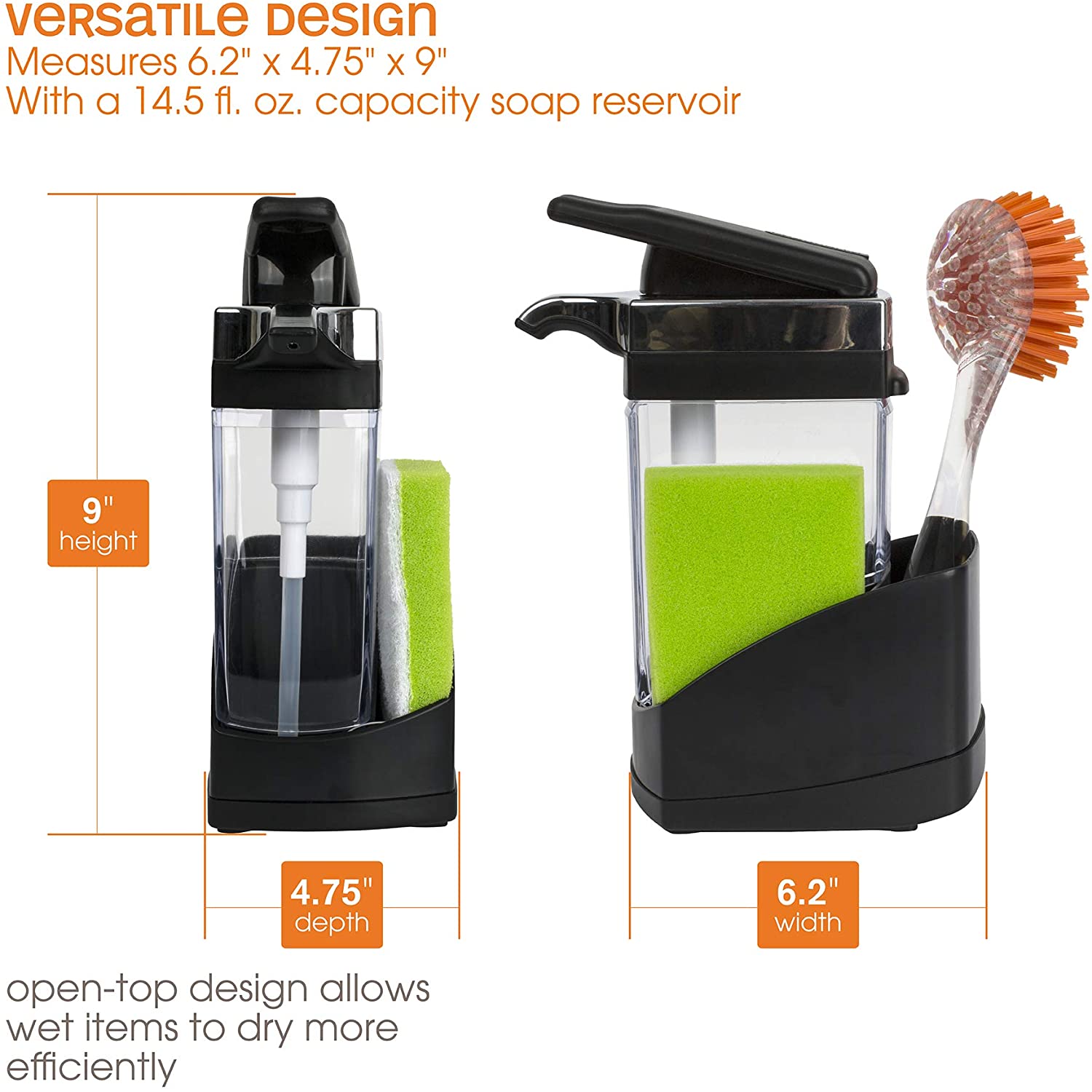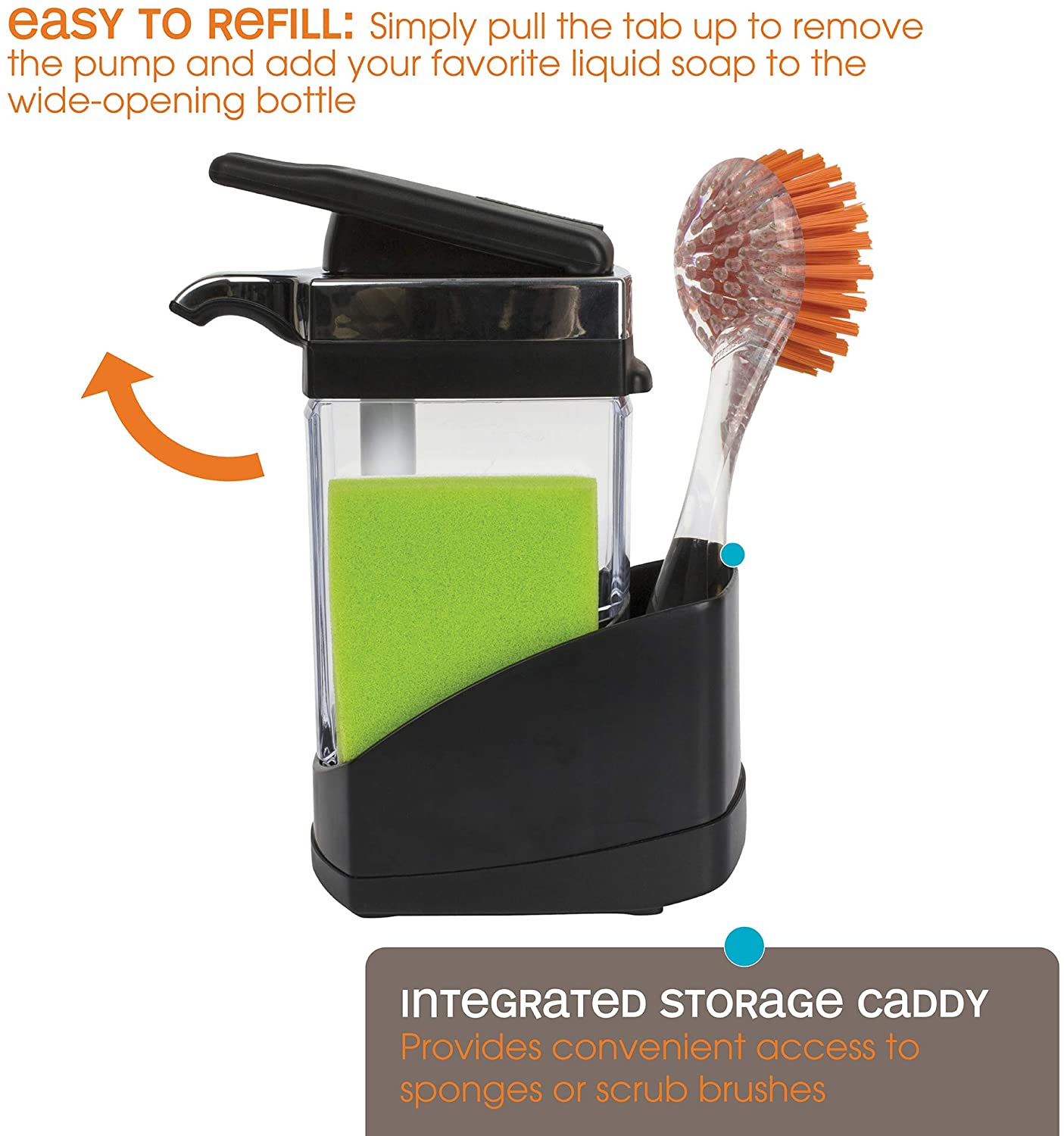 Casabella Sink Sider Solo Kitchen Soap Pump and Sponge Caddy. Black