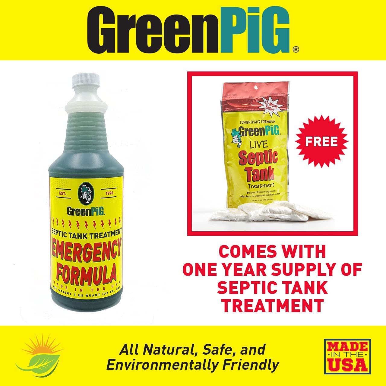 GREEN PIG Septic Tank Treatment Emergency Formula Quickly Breaks Down Clogged 1 Quart