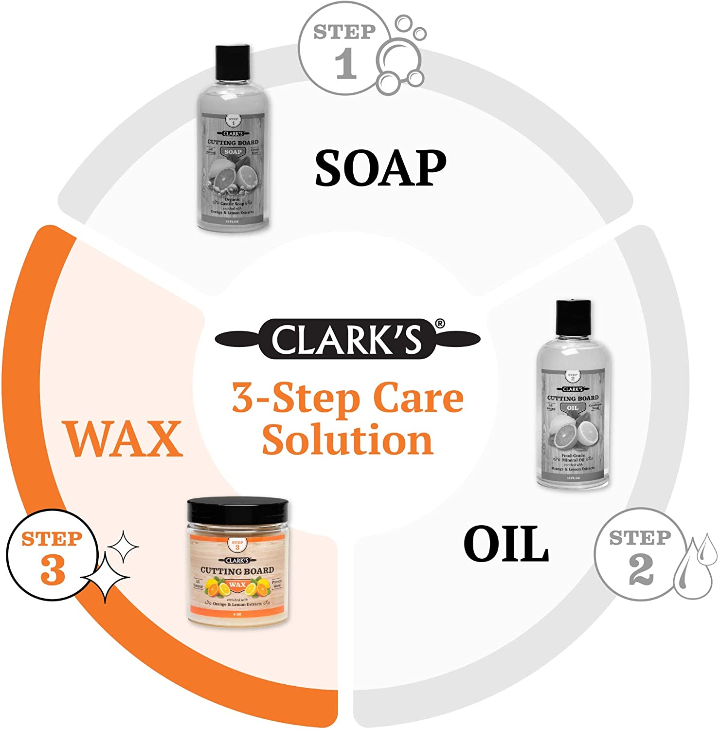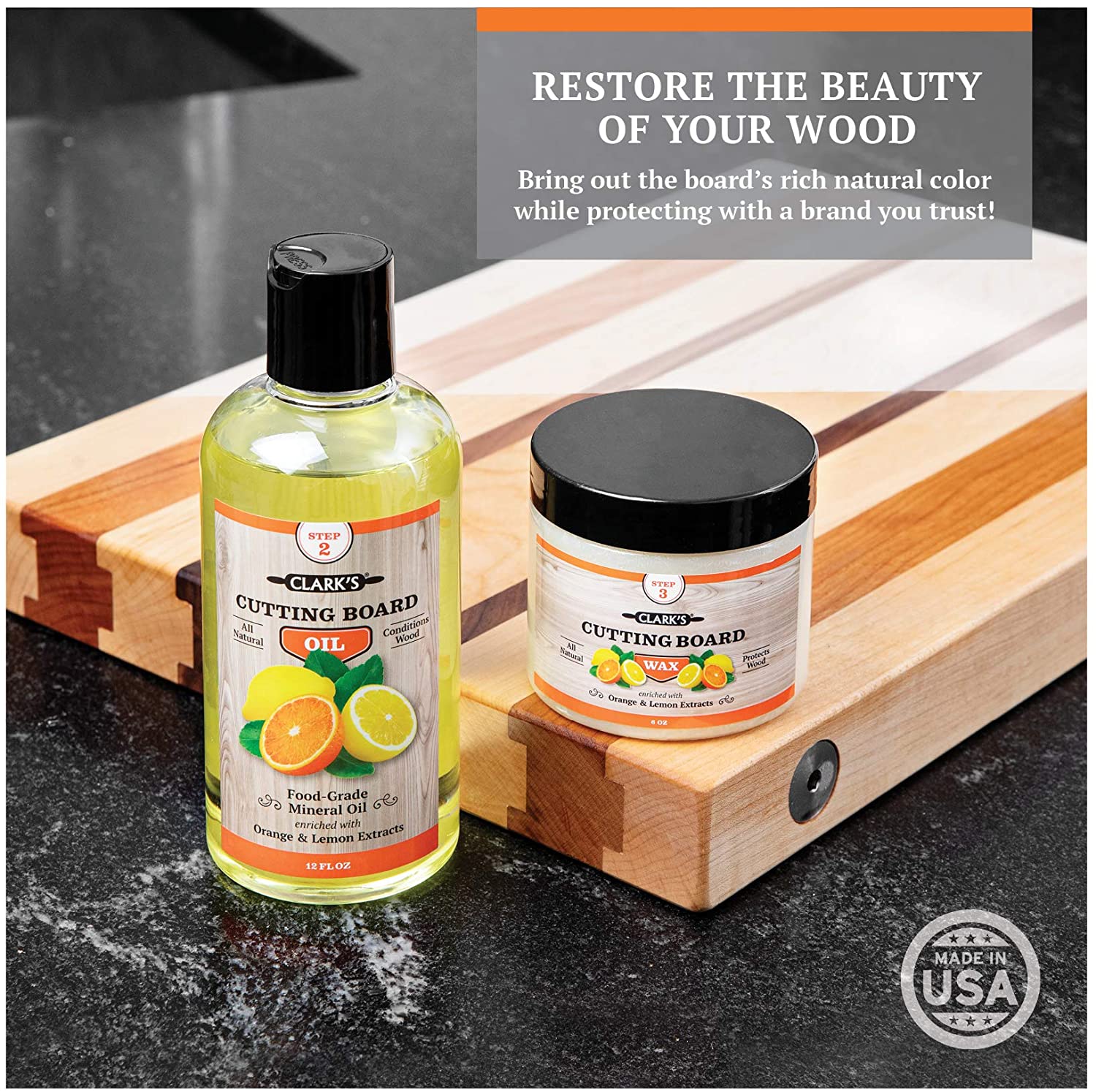 CLARK-S Cutting Board Finish Wax. Enriched with Lemon & Orange Oils (6 ounces)