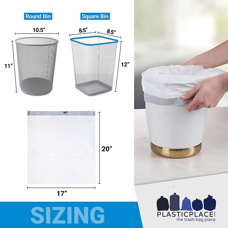 Plasticplace Trash Bags. White Drawstring Garbage Can Liners. 6 Gallon (100 Count)