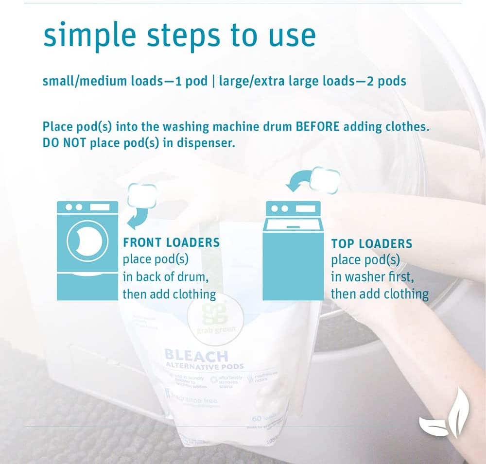 Grab Green Natural Bleach Alternative Pods. Unscented/Free & Clear. 60 Loads