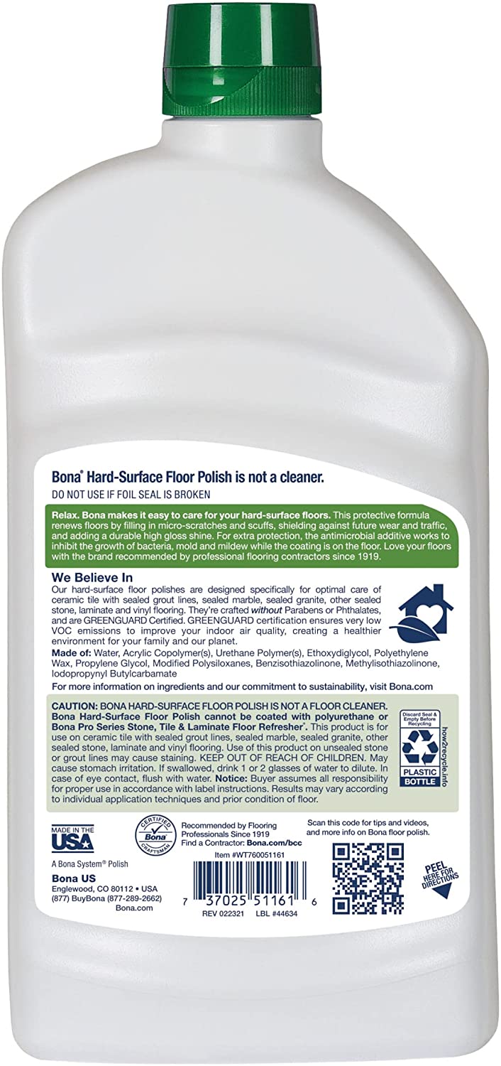 Bona Hard-Surface Floor Polish. for Stone Tile Laminate and Vinyl LVT/LVP. High Gloss. 32 Fl Oz