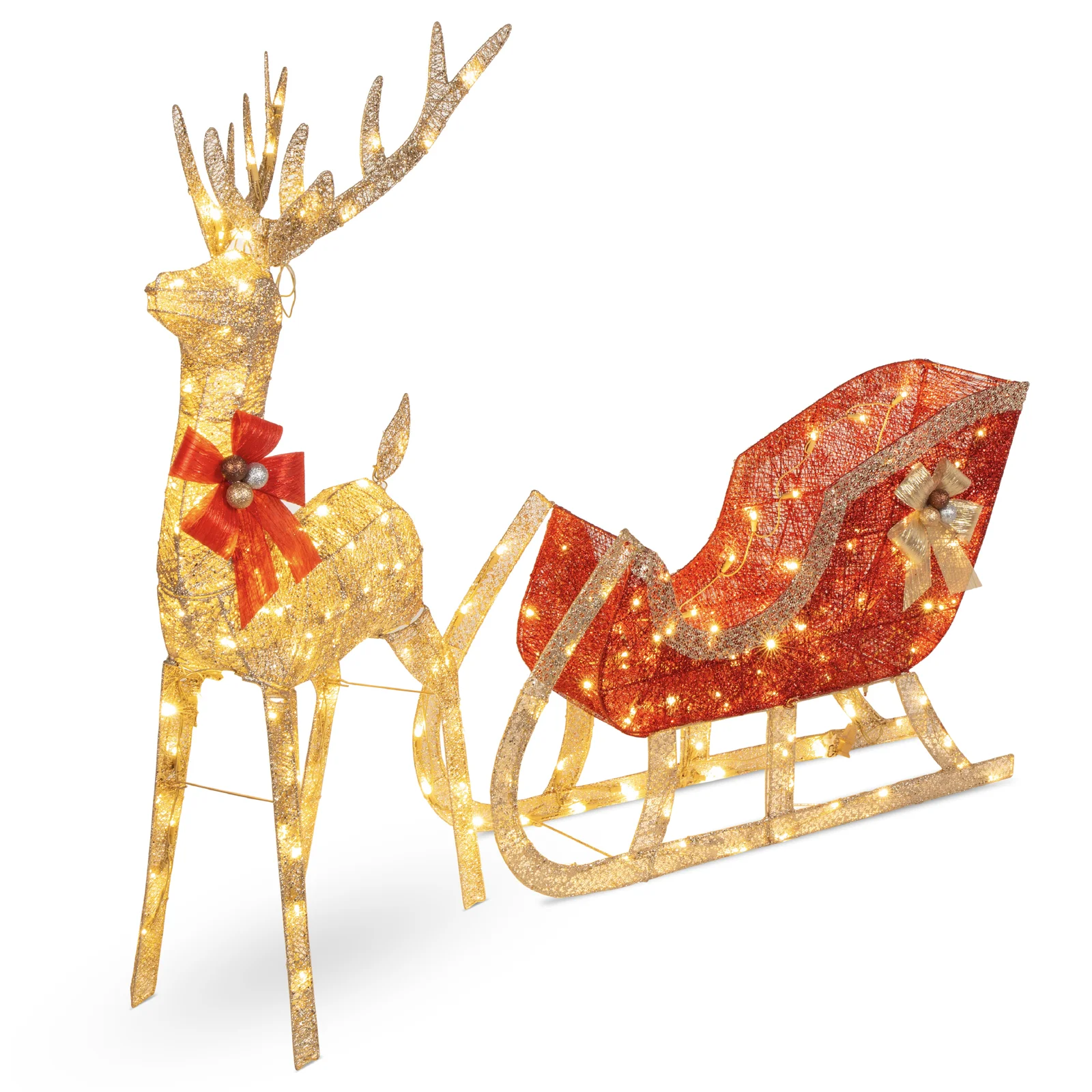 National Tree Company Prelit LED 48 in Reindeer and 24 in Sleigh Christmas Decorations