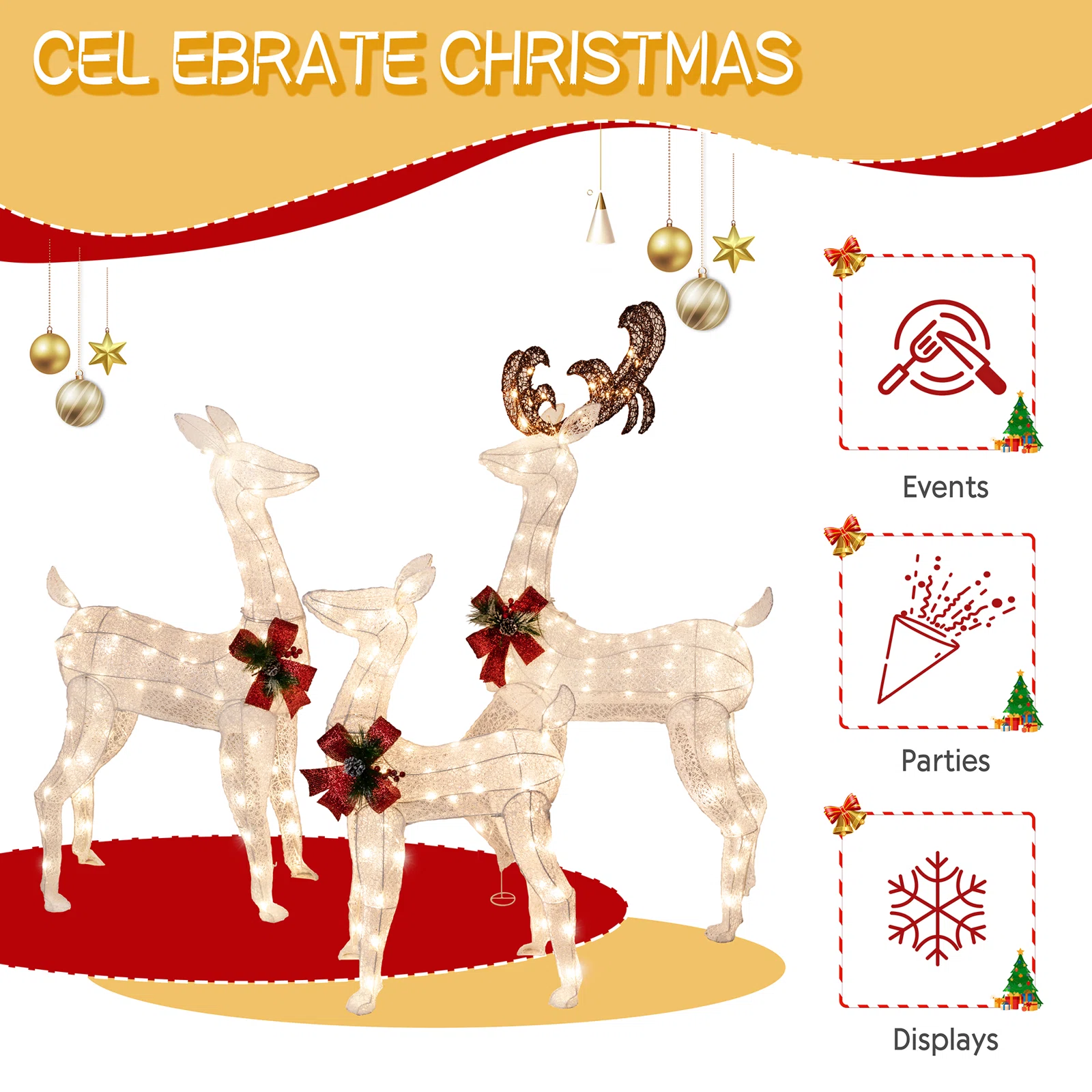 3 Piece Christmas Deer Light Display Set