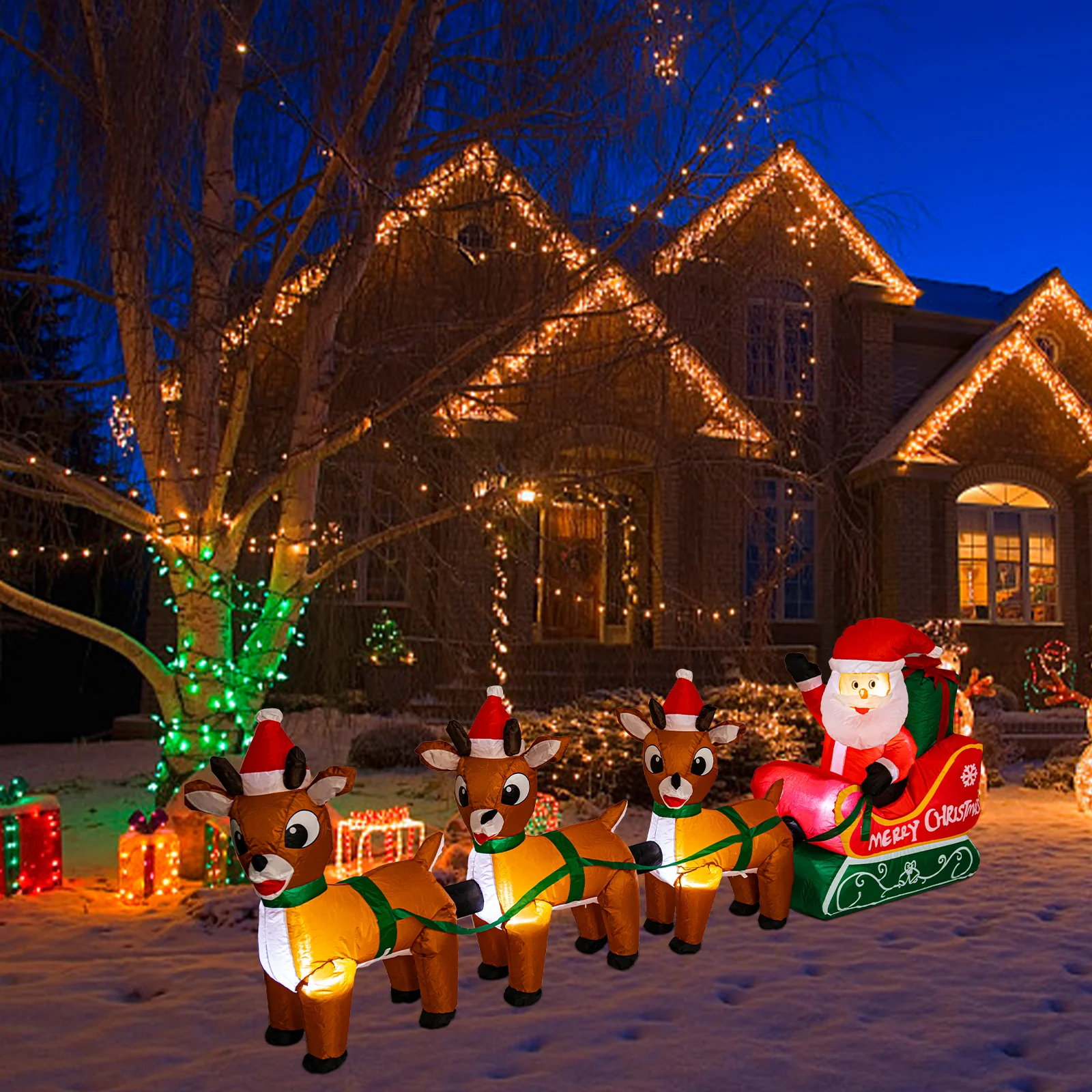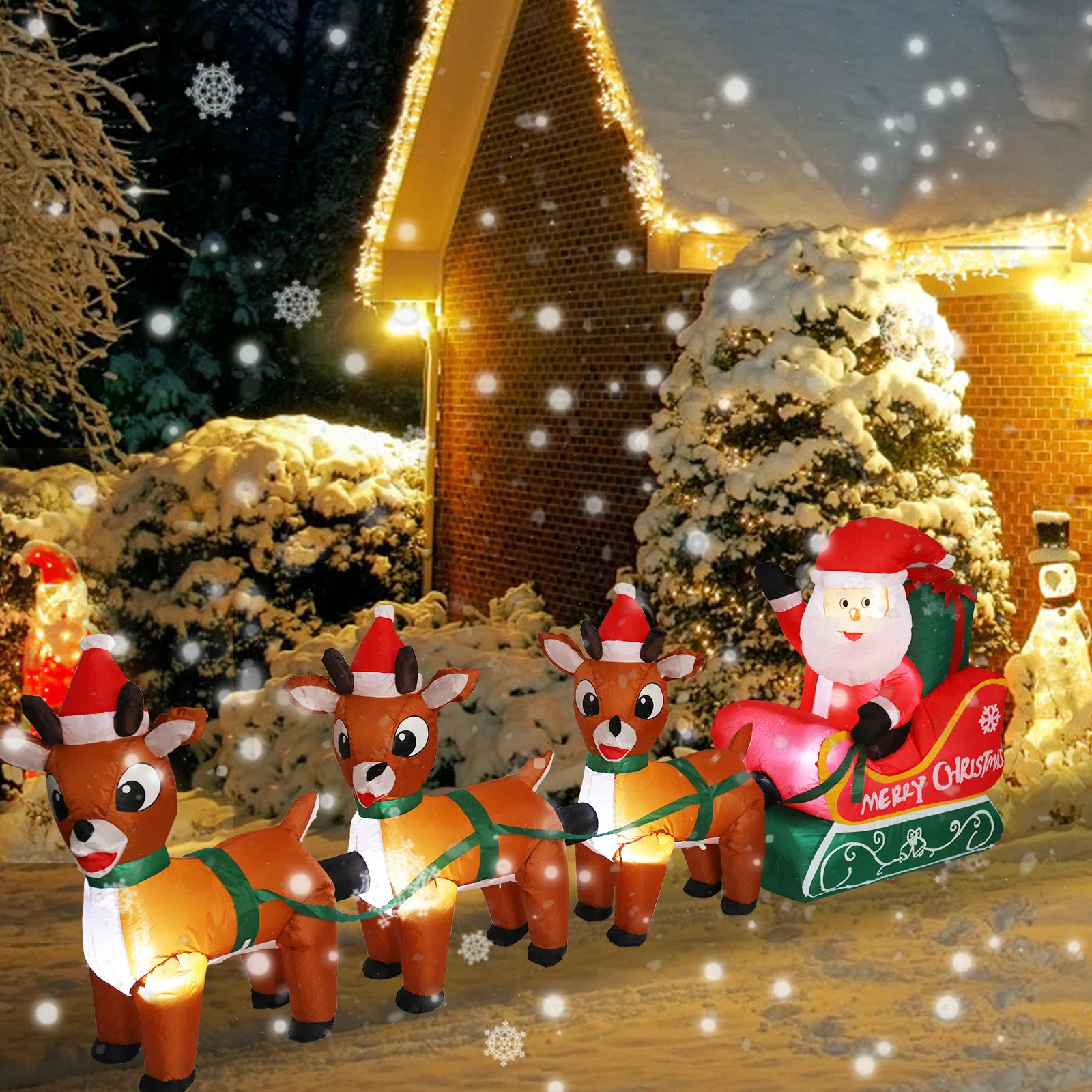 8Ft Long Lighted Christmas Santa Claus On Sleigh With 3 Reindeer & Gift Bag Inflatable