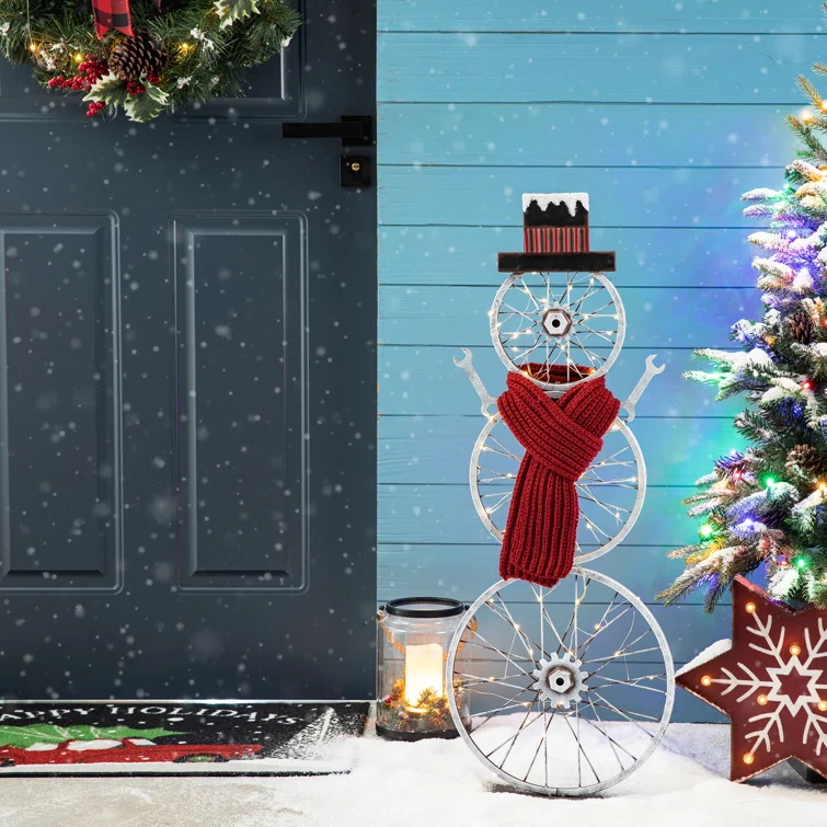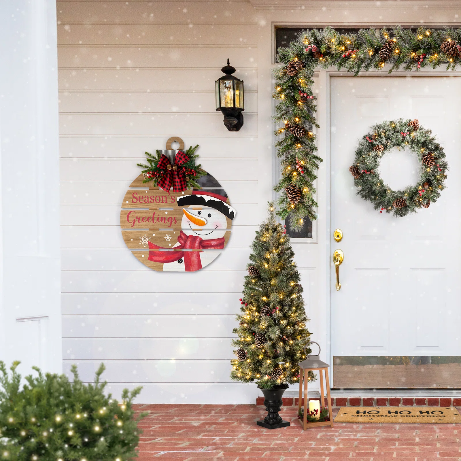 30″H Lighted Round Wooden Christmas Snowman Porch Décor
