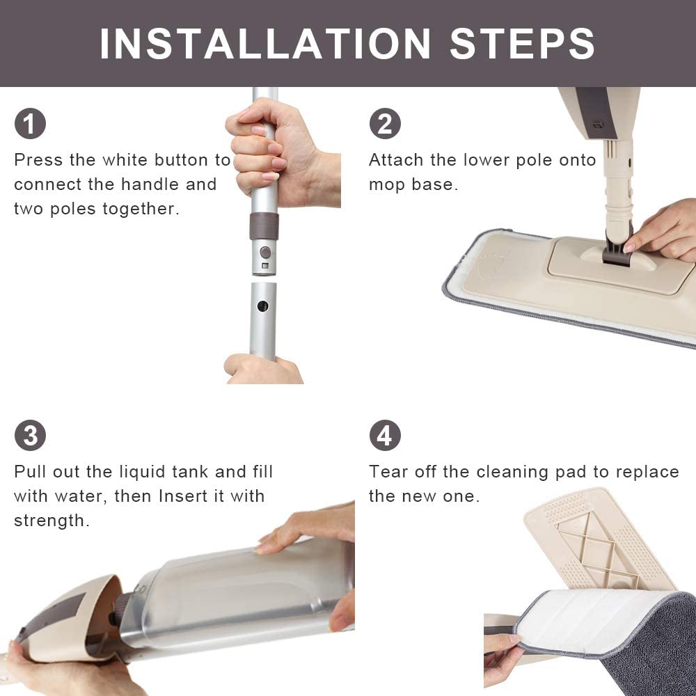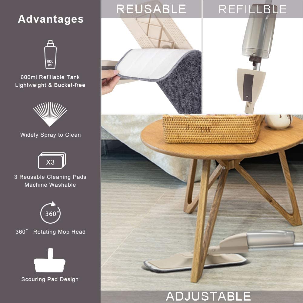 Hard Floor Mop Spray Mop Wood Tile Laminate Ceramic Floor Clean 2 Microfiber