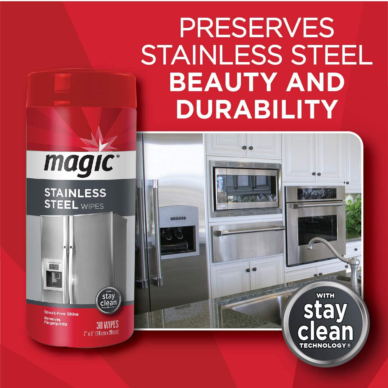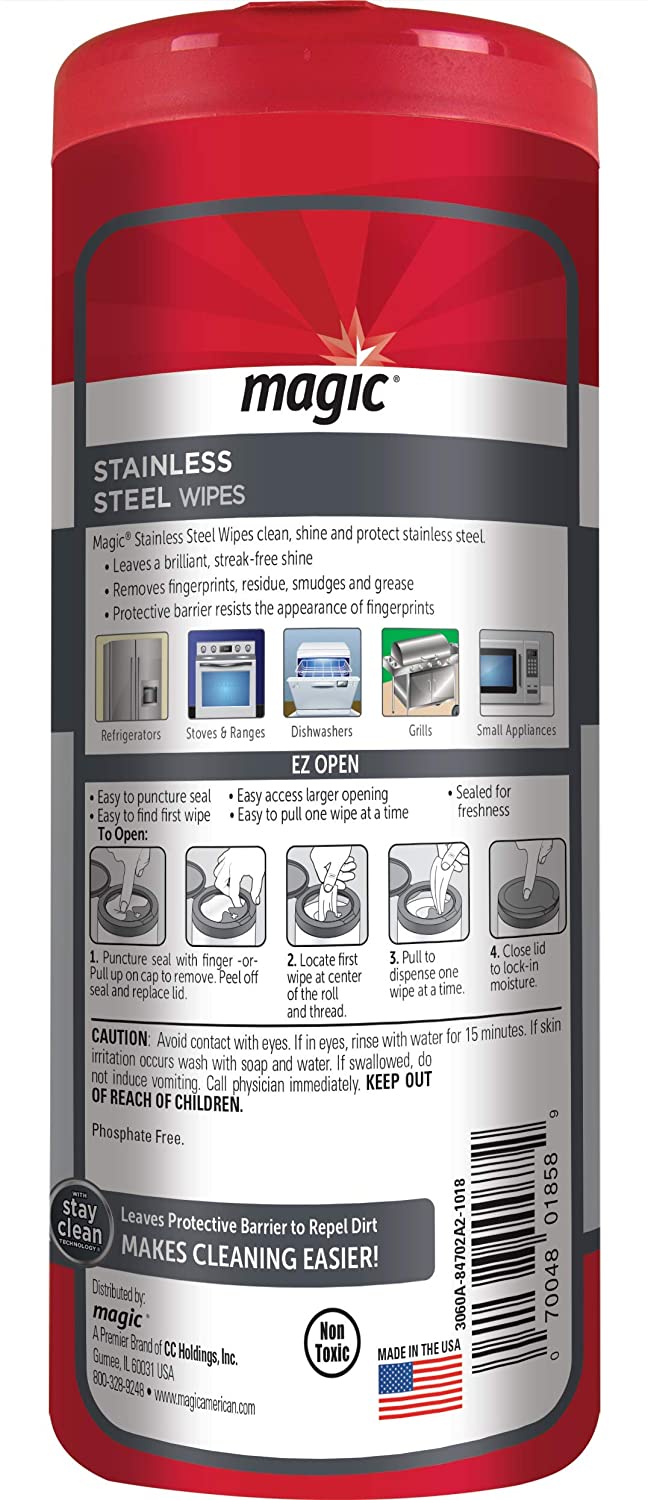 Magic Stainless Steel Wipes. Removes Fingerprints - 30 Count (2 Pack)