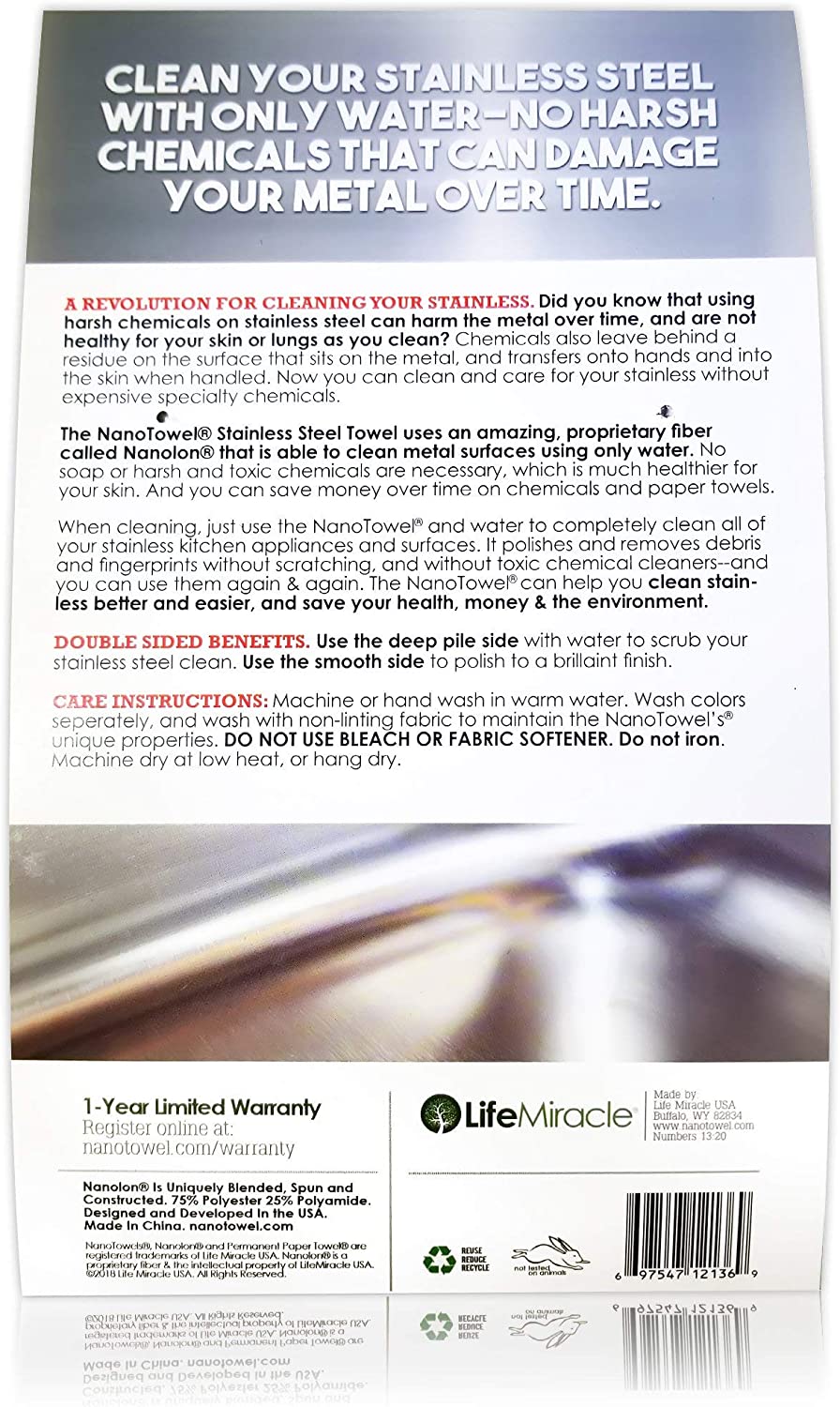 Nano Towels Stainless Steel Cleaner. The Amazing Chemical Free 7×16″ (1 pc)