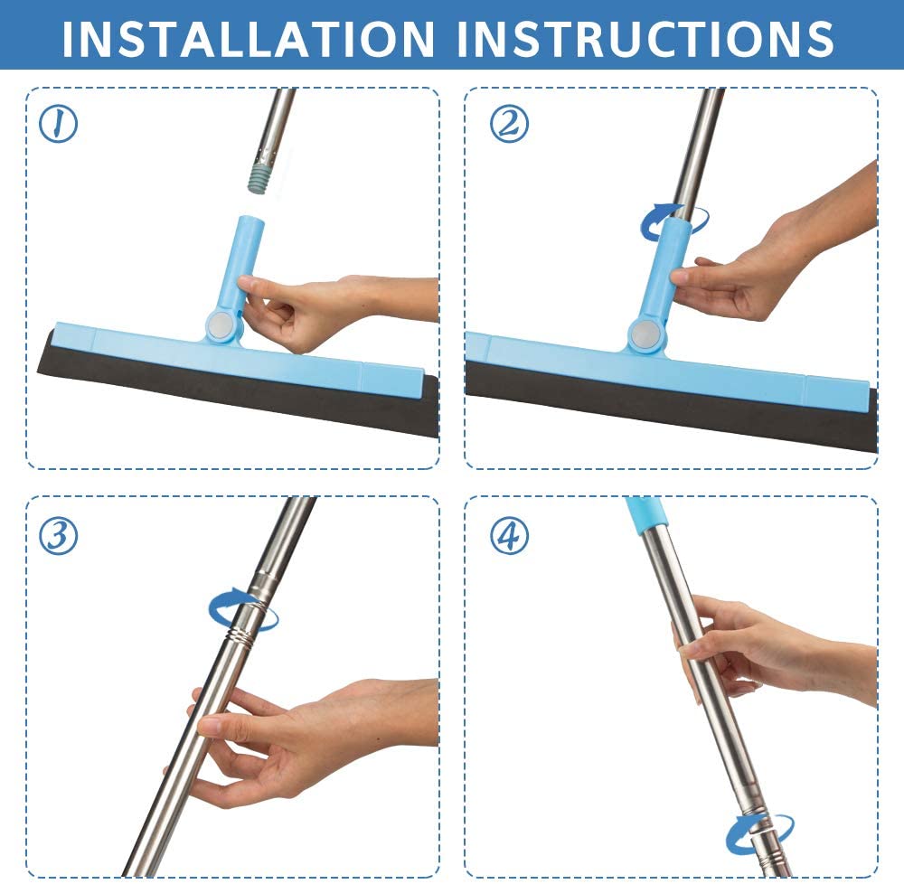 Yocada Floor Squeegee Scrubber 54in Long Adjustable Telescopic Pole Heavy Duty