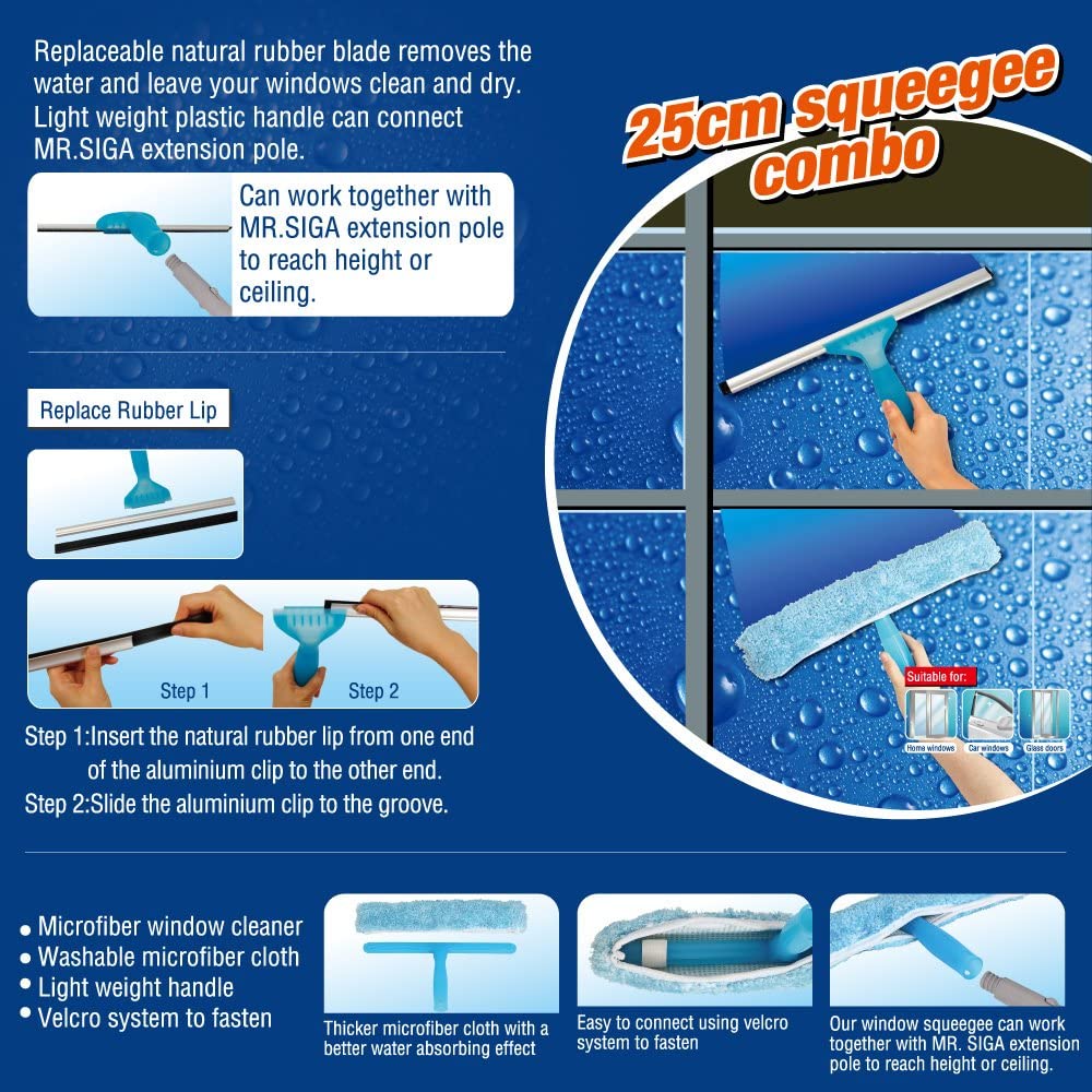 MR.SIGA Professional Window Cleaning. Squeegee & Microfiber Window Scrubber. 10″