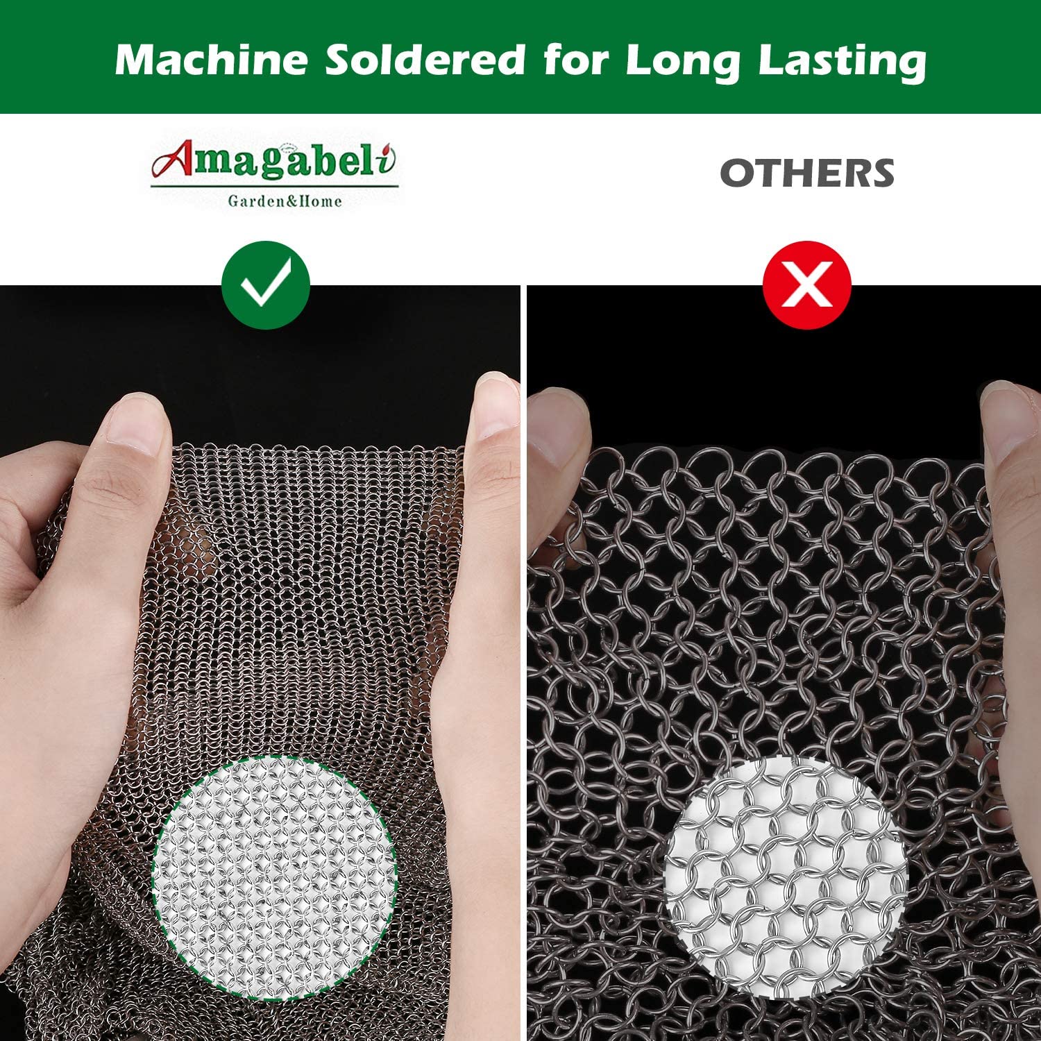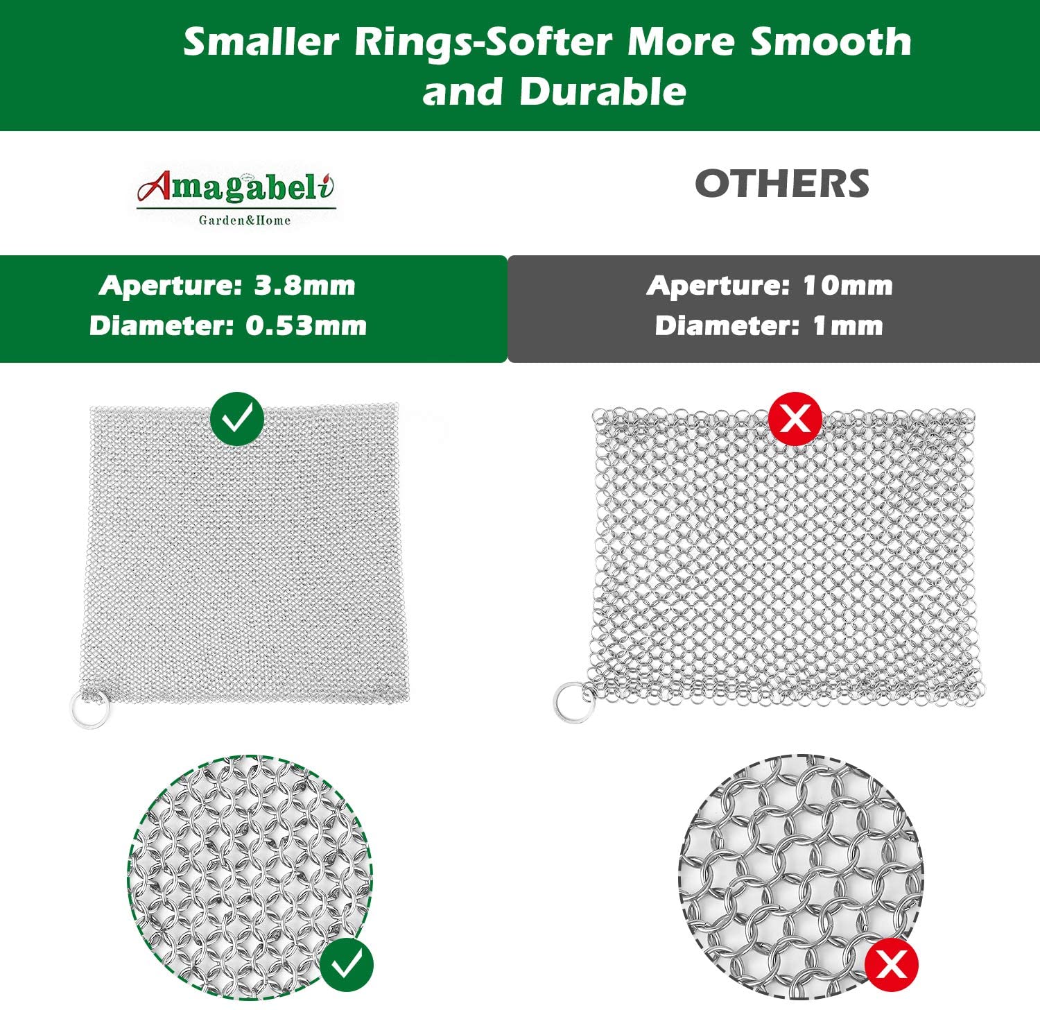 Amagabeli 10x10 Cast Iron Cleaner Mesh Premium 316 Stainless Steel Small Rings