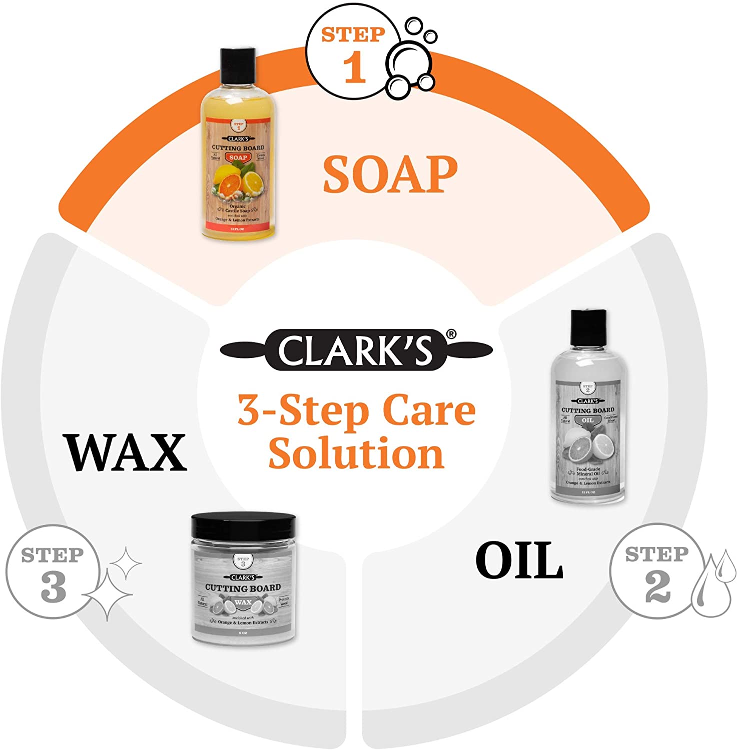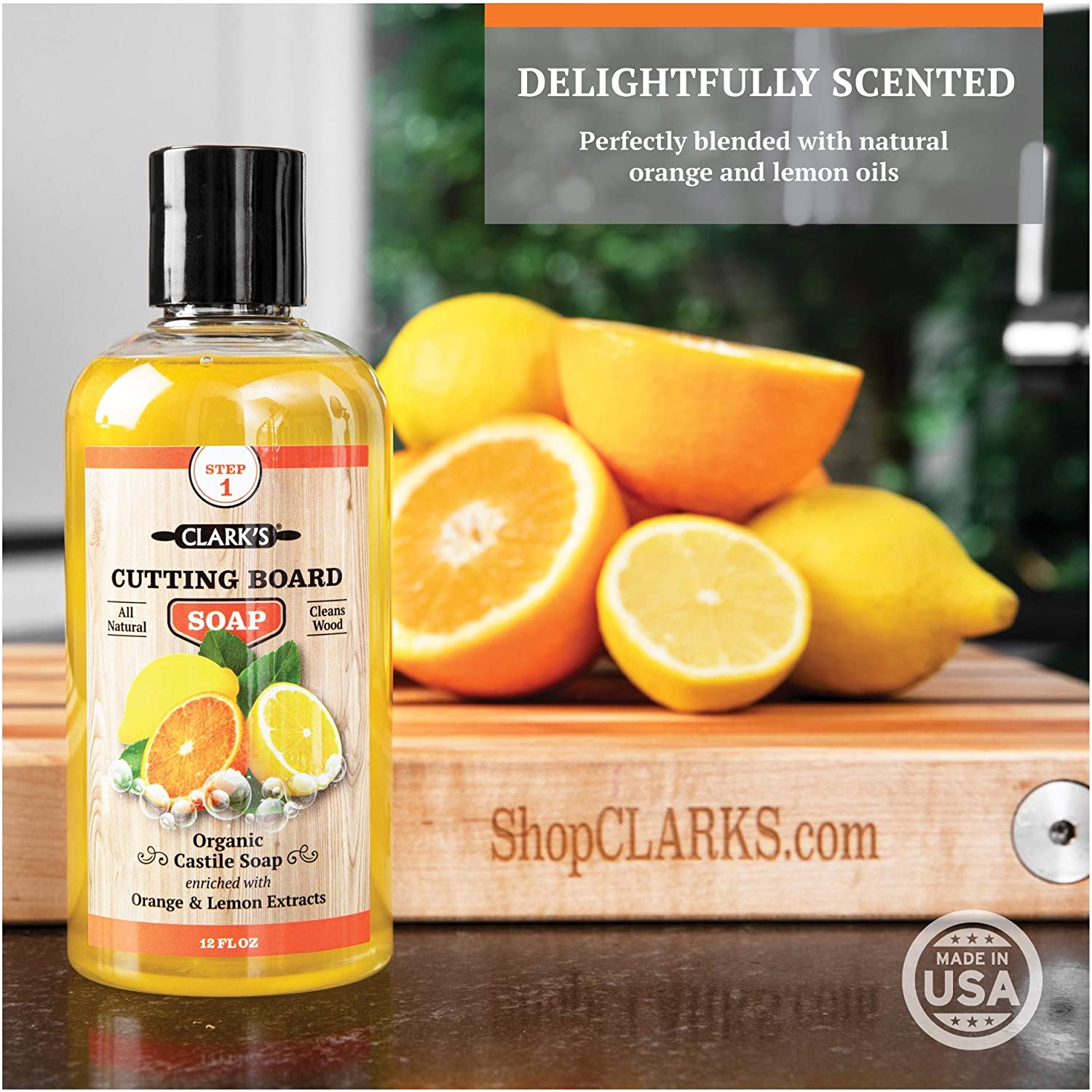 CLARK-S Cutting Board Soap (12oz) - Enriched with Lemon & Orange Oils