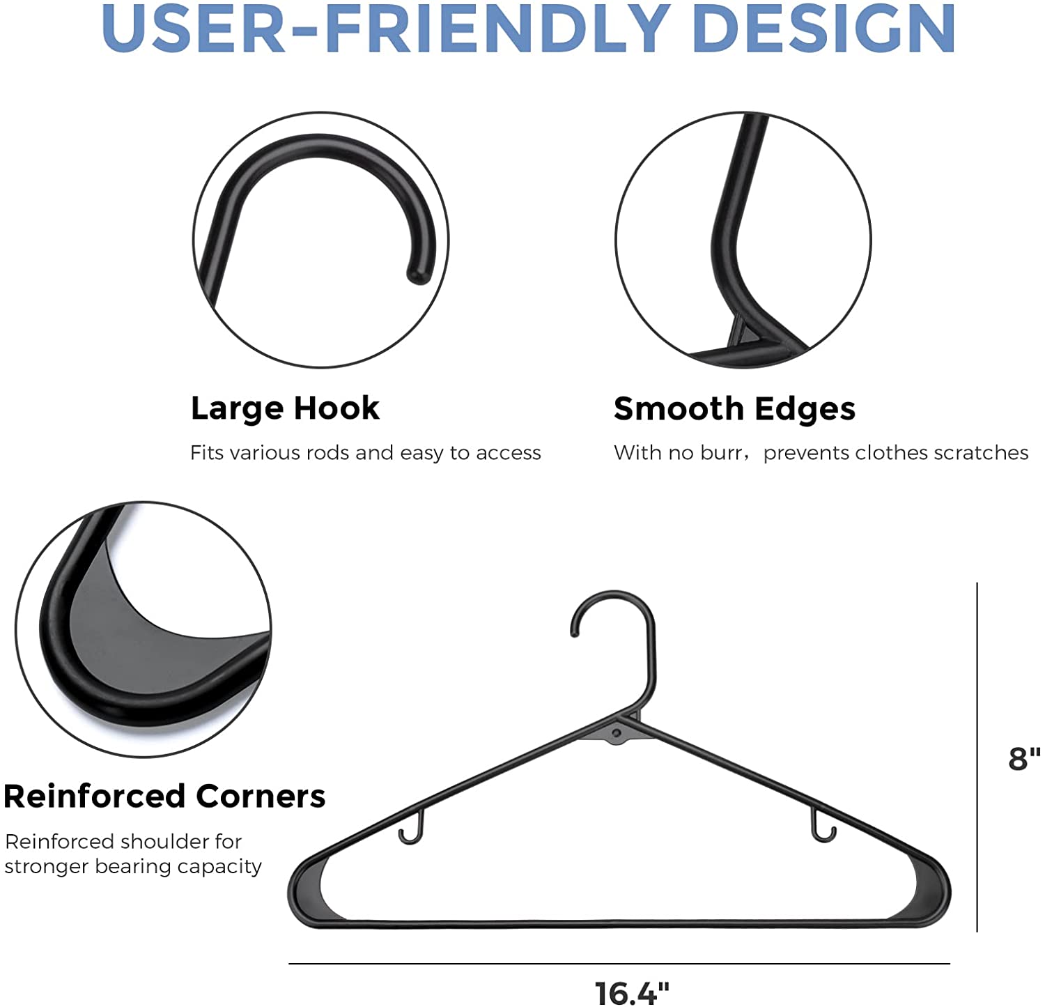 HOUSE DAY Black Plastic Hangers Tubular Adult Hangers 16.5 Inch. (Black. 60 Pack)