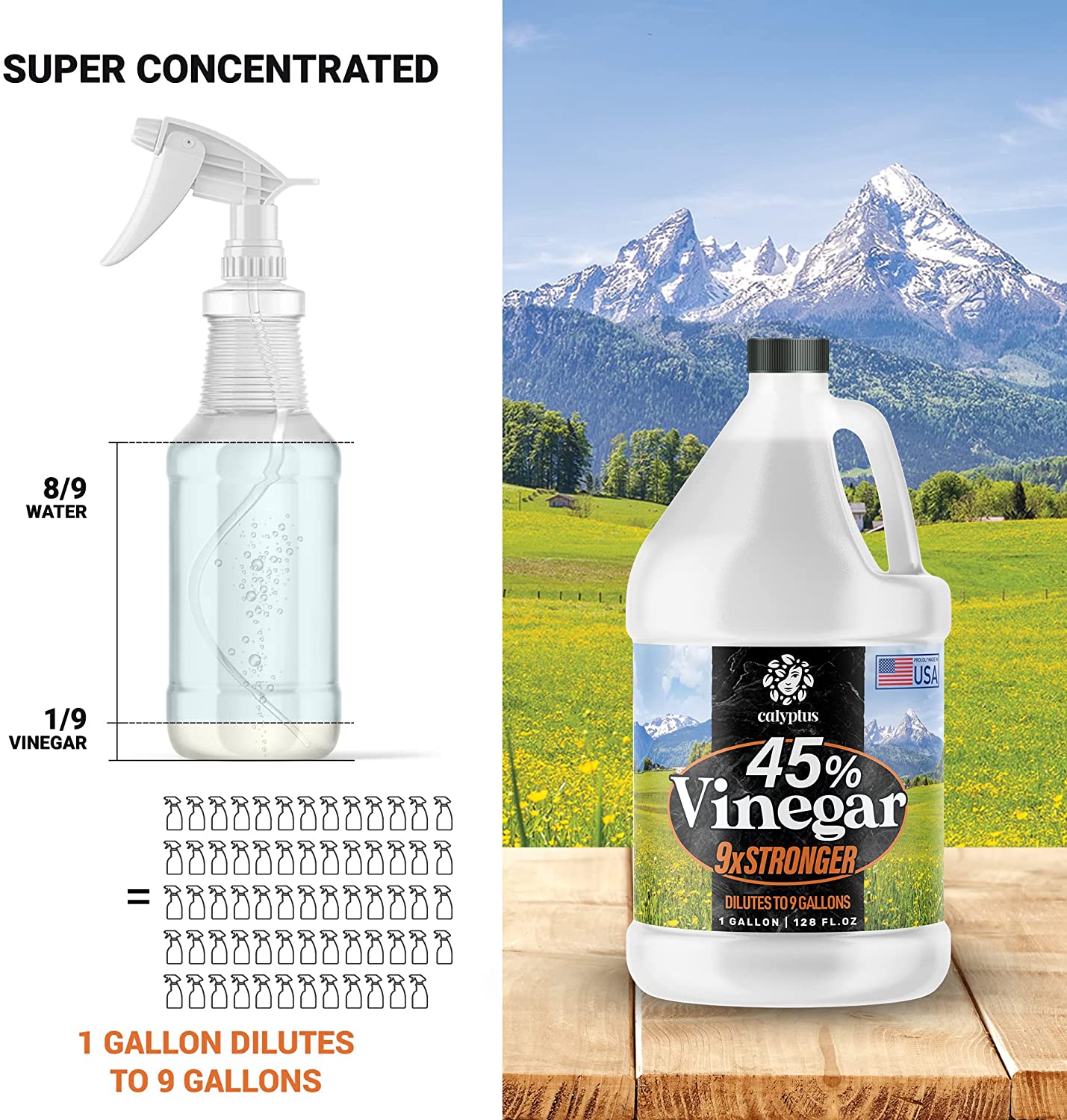 Calyptus 45% Pure Super Concentrated Vinegar.9x Power Vinegar .1 Gallon