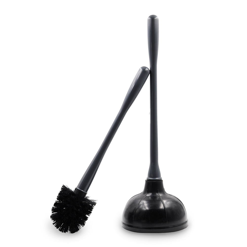 Toilet Plunger and Bowl Brush Combo for Bathroom Cleaning. Black. 1 Set