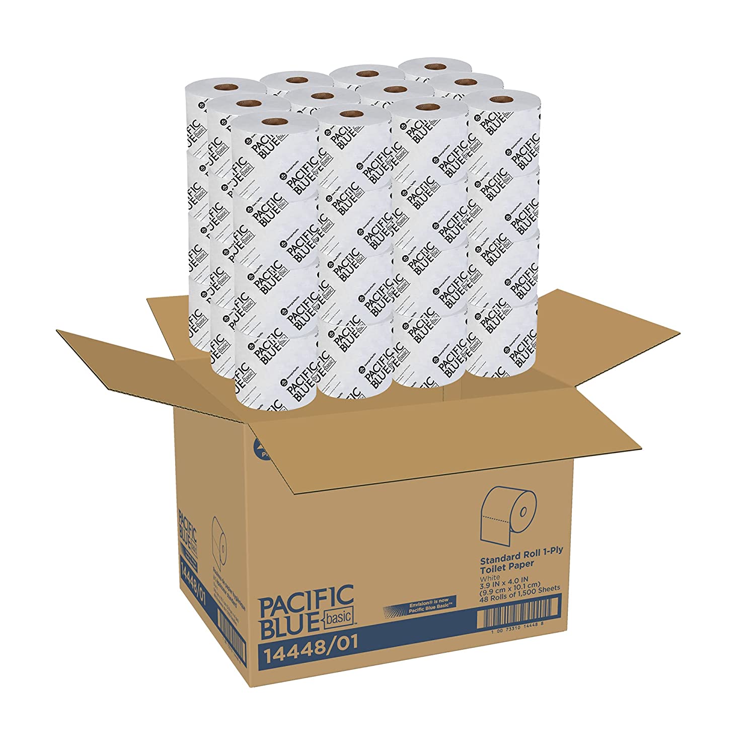 Georgia-Pacific Blue Basic 1-Ply Toilet Paper (previously branded Envision). 14448/01. 1.500 Sheets Per Roll. 48 Rolls Per Case