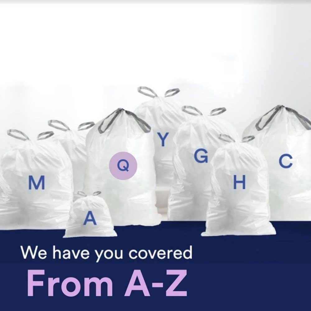 Plasticplace Simplehuman®* Code Q Compatible Packs. White Drawstring Garbage Liners 13-17 Gallon. 25.25″W x 32.75″H (20 Count/5 Pack)