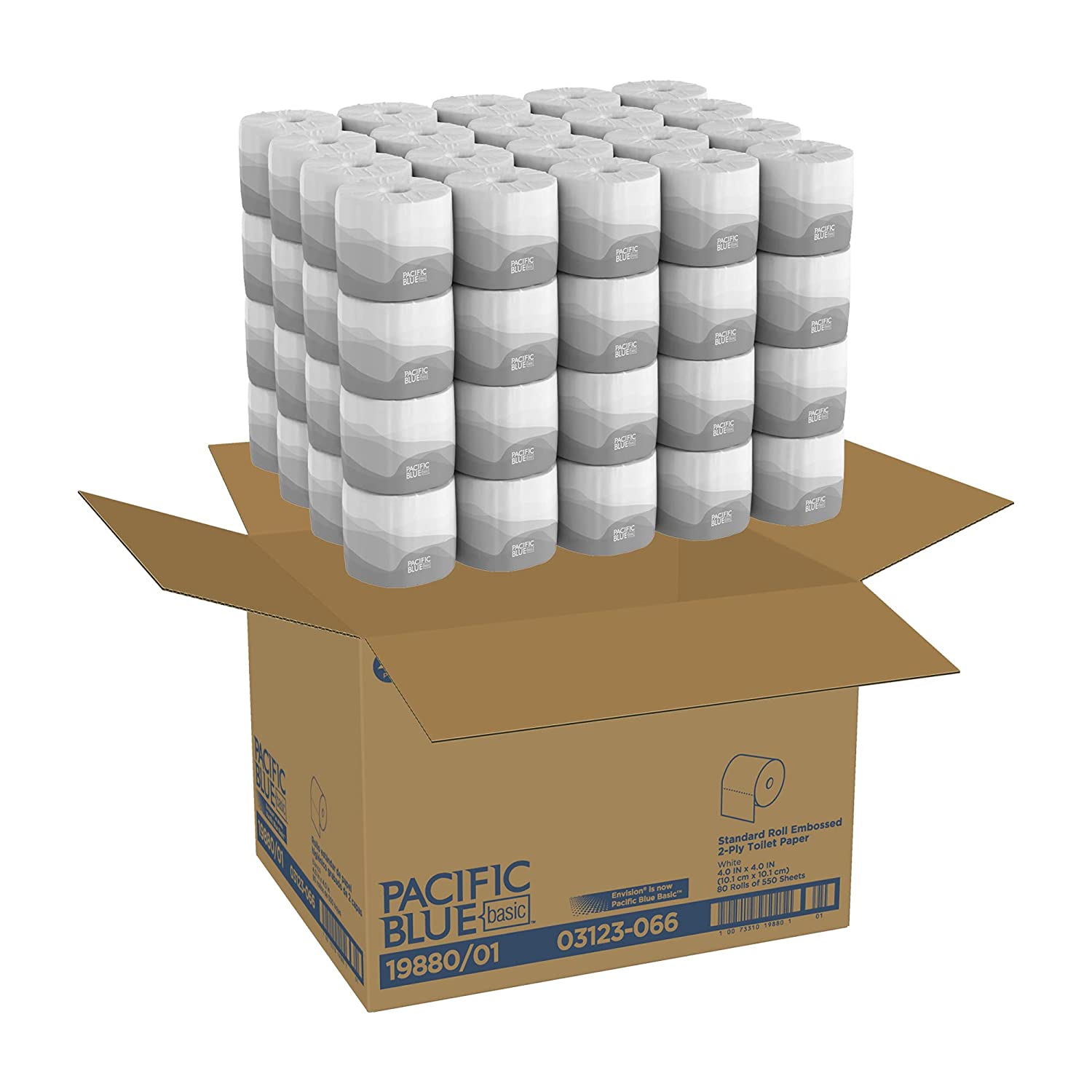 Georgia-Pacific Blue Basic 2-Ply Embossed Toilet Paper (previously branded Envision). 19880/01. 550 Sheets Per Roll. 80 Rolls Per Case