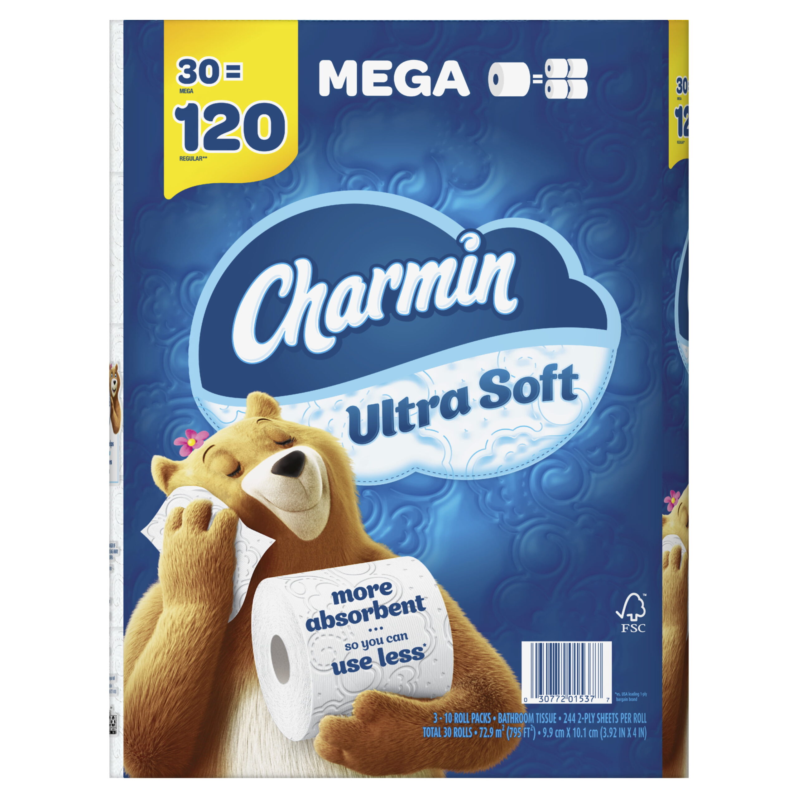 Charmin Ultra Soft Toilet Paper Mega Roll. 244 Sheets Per Roll. 30 Count