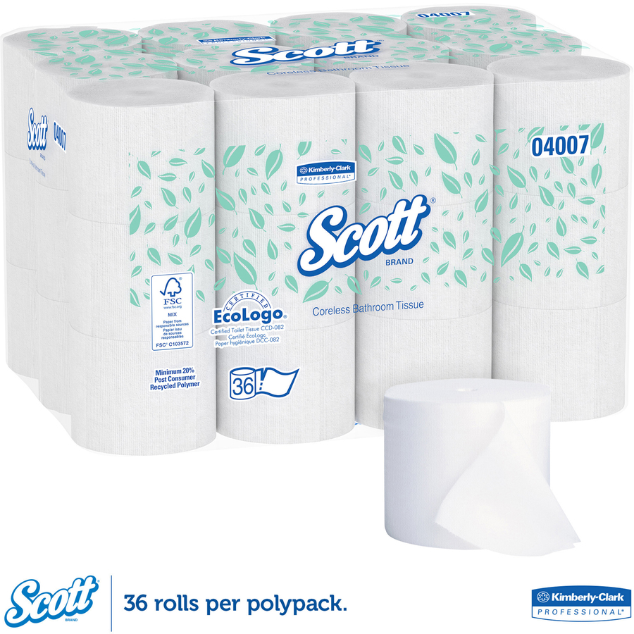 Scott Essential Toilet Paper (KCC-04007). 2-PLY Standard Rolls. 36 Rolls per Case. 1.000 Sheets per Roll. 36.000 Sheets per Case