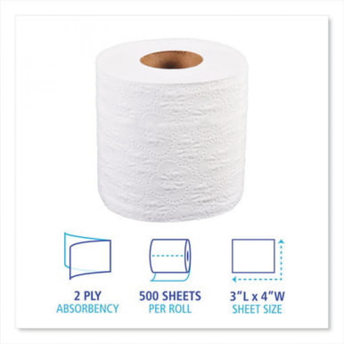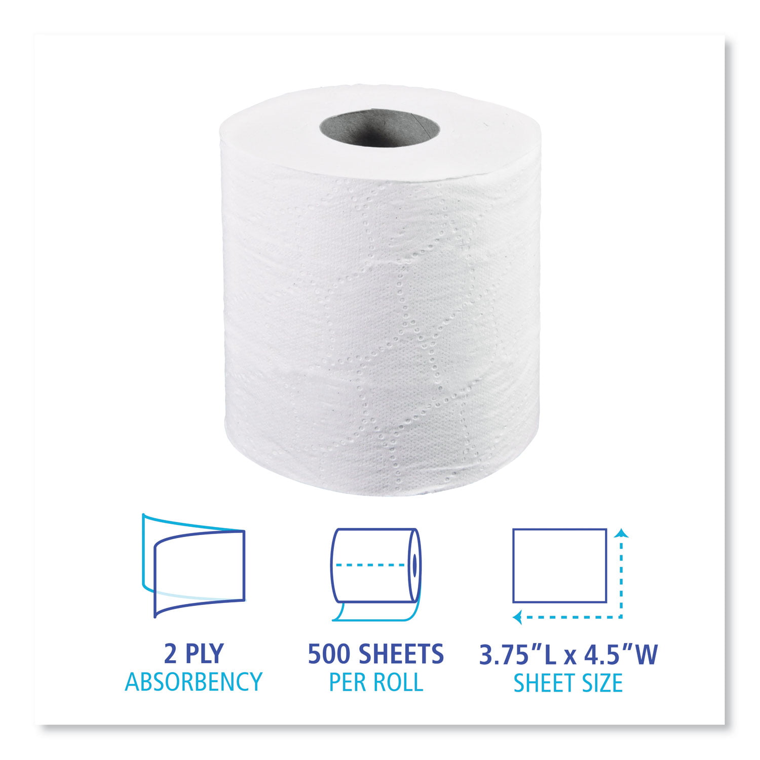 Boardwalk Two-Ply Toilet Tissue. Septic Safe. White. 4.5 x 3. 500 Sheets/Roll. 96 Rolls/Carton -BWK6180