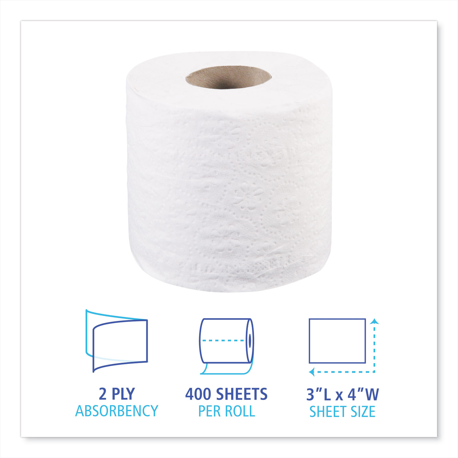 Boardwalk Two-Ply Toilet Tissue. Septic Safe. White. 4 x 3. 400 Sheets/Roll. 96 Rolls/Carton -BWK6144
