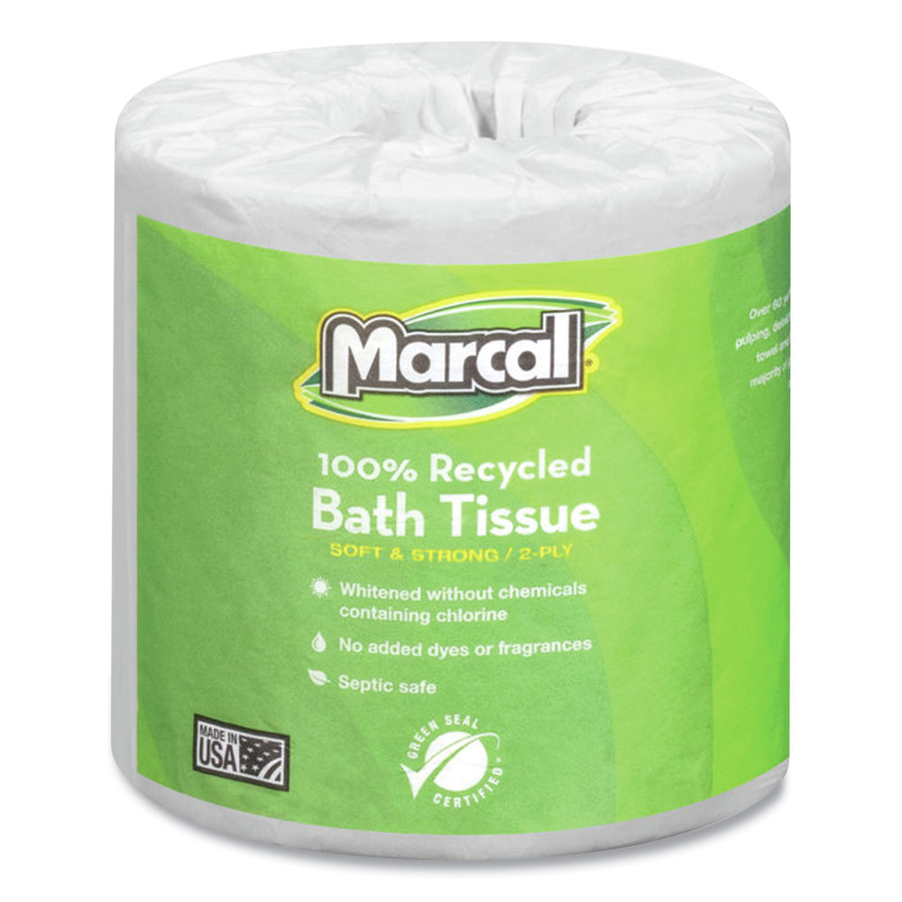 Marcal Pro 100% Recycled Bathroom Tissue 2 Ply - 4″ x 4″ - 500 Sheets/Roll - White - Chlorine-free. Dye-free. Fragrance-free. Lint-free. Eco-friendly. Septic Safe. Bleach-free. Strong. Absorbent - For