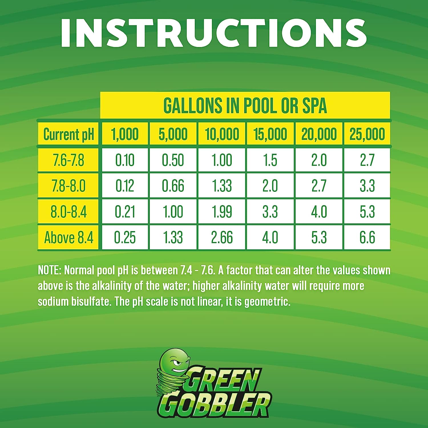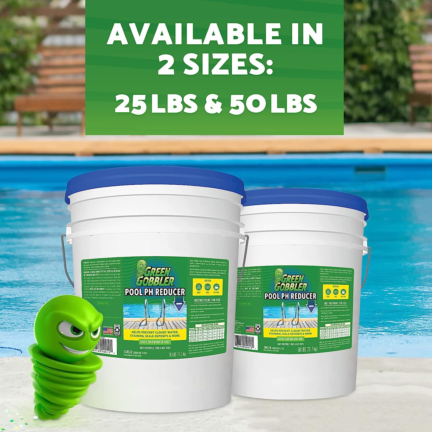 Green Gobbler pH Down | Pool & Hot Tub Spa pH Reducer | pH decreaser | Sodium Bisulfate | 25 lb Pail