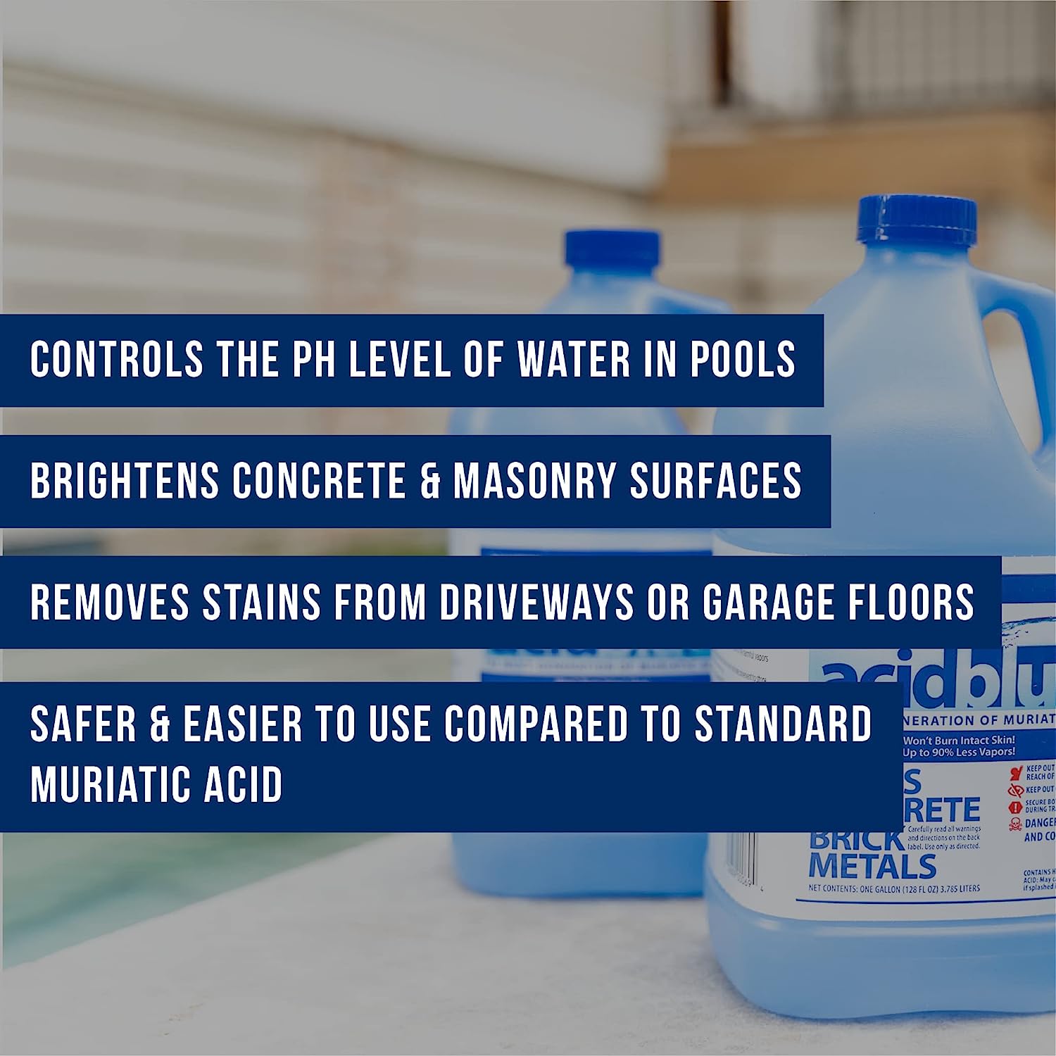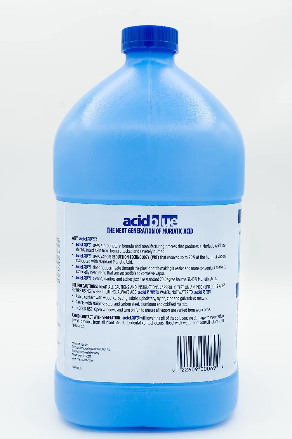 Acid Blue Muriatic Acid by CPDI - Swimming Pool pH Reducer Balancer | Buffered. Low-Fume - Case (8 Gallons)