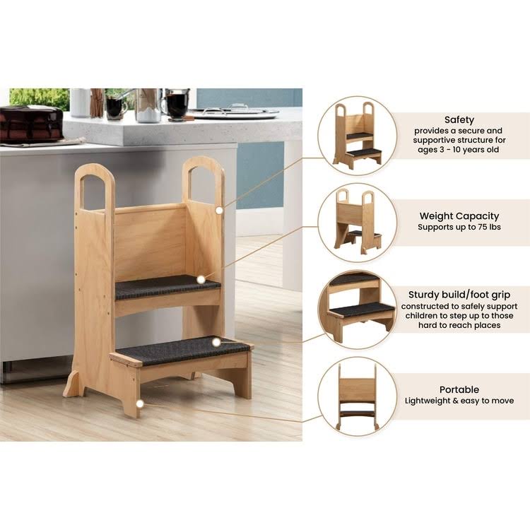 Naomi Home Kids Step to It Stool, Kids Kitchen Step Stool, Natural