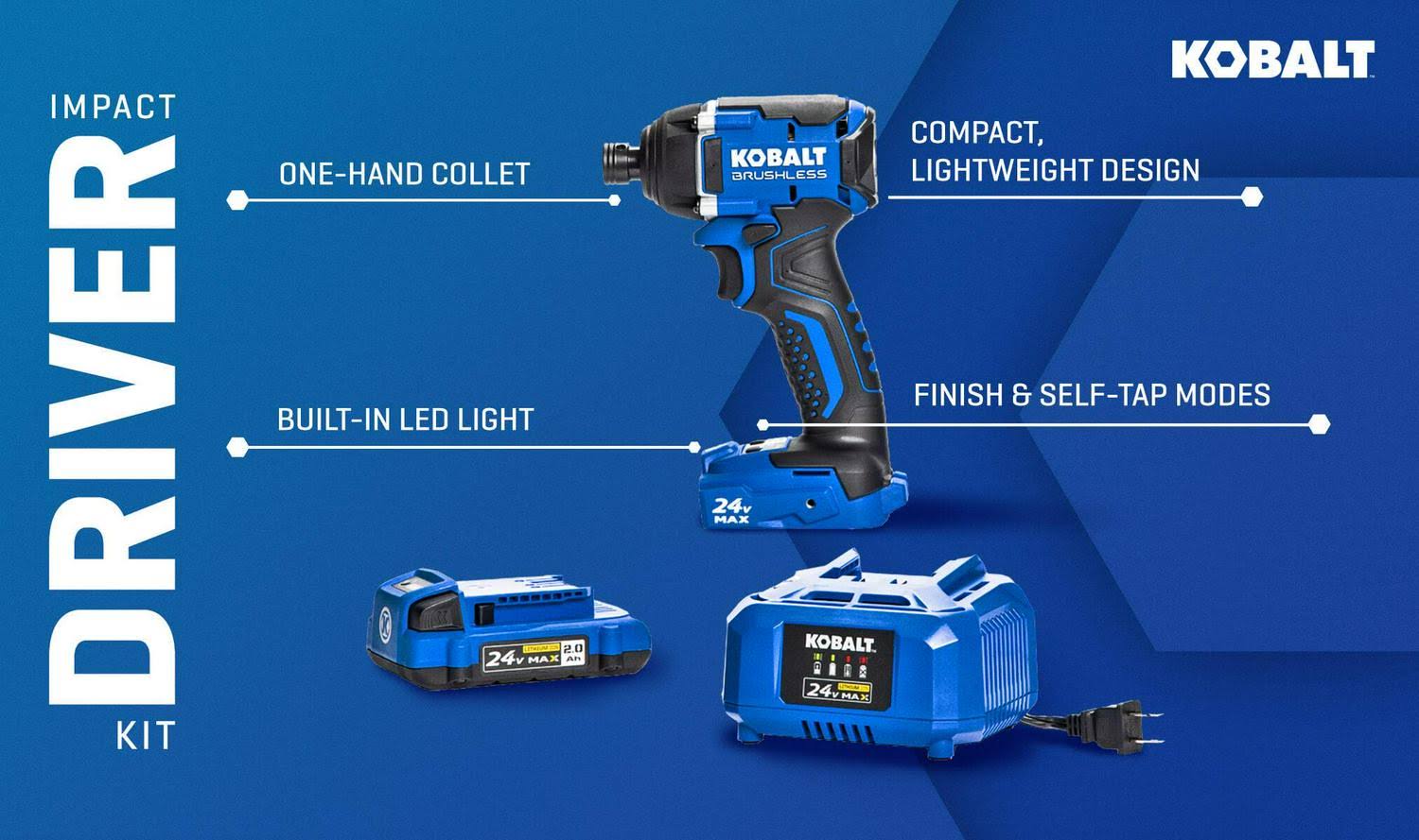 Kobalt 24-Volt Max 1/4-in Variable Speed Brushless Cordless Impact Driver (1-Battery Included)