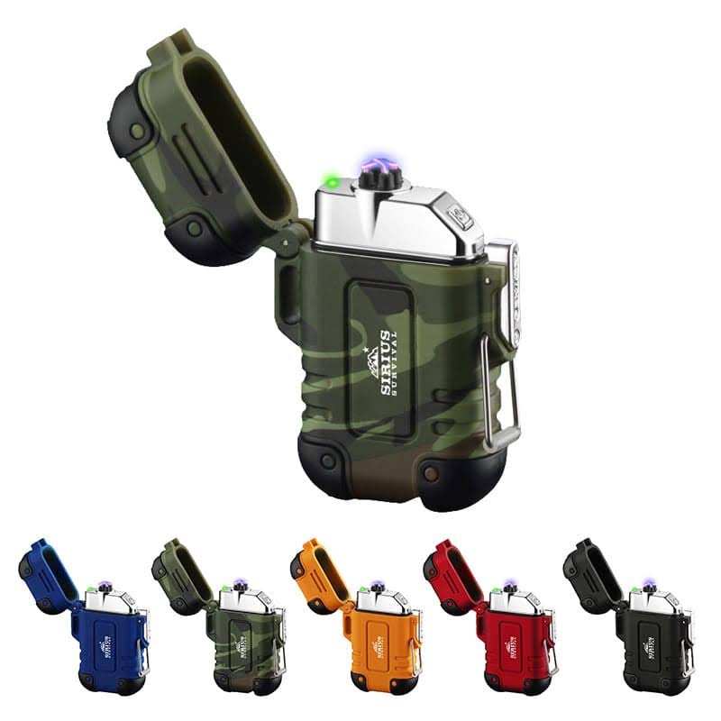 Sirius Survival Arc4 Waterproof/Windproof Plasma Lighter- Top-Facing Dual Arc- Rechargeable USB Electric Lighter for Outdoor Adventures with Whistle