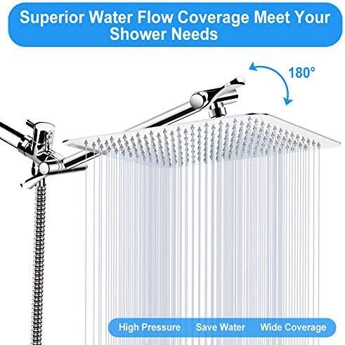 KAQINU Shower Head , 8 inch High Pressure Rainfall Shower Head / Handheld Showerhead Combo with 11 inch Extension Arm, Anti-leak