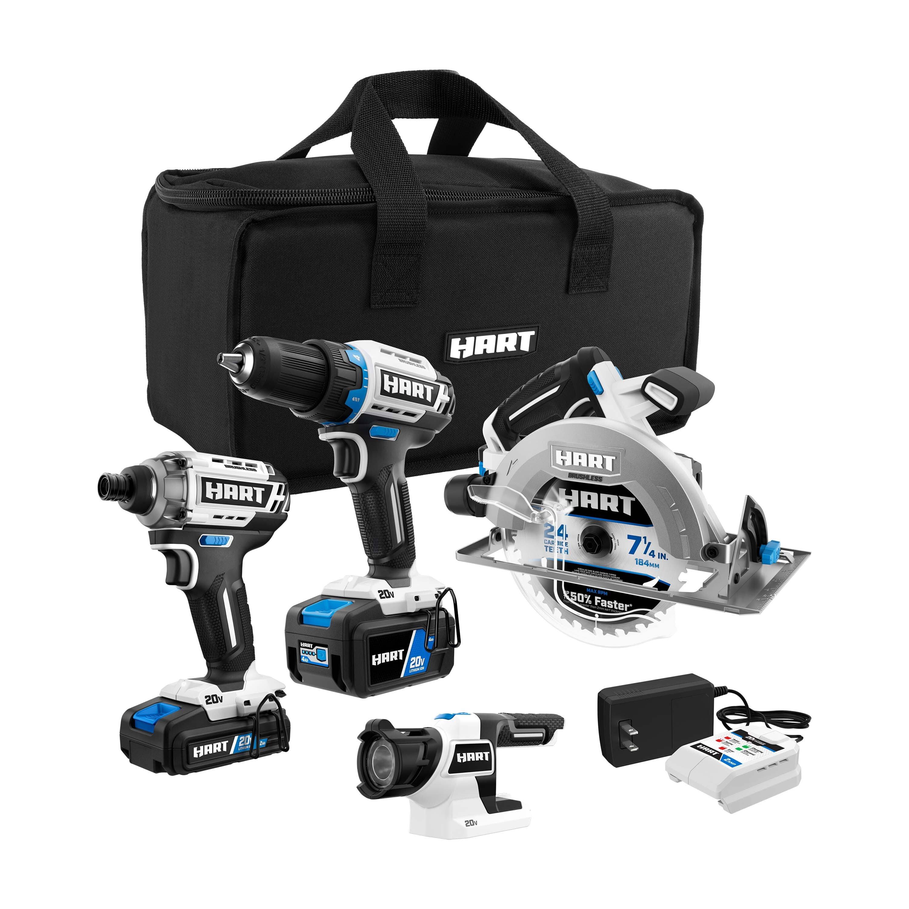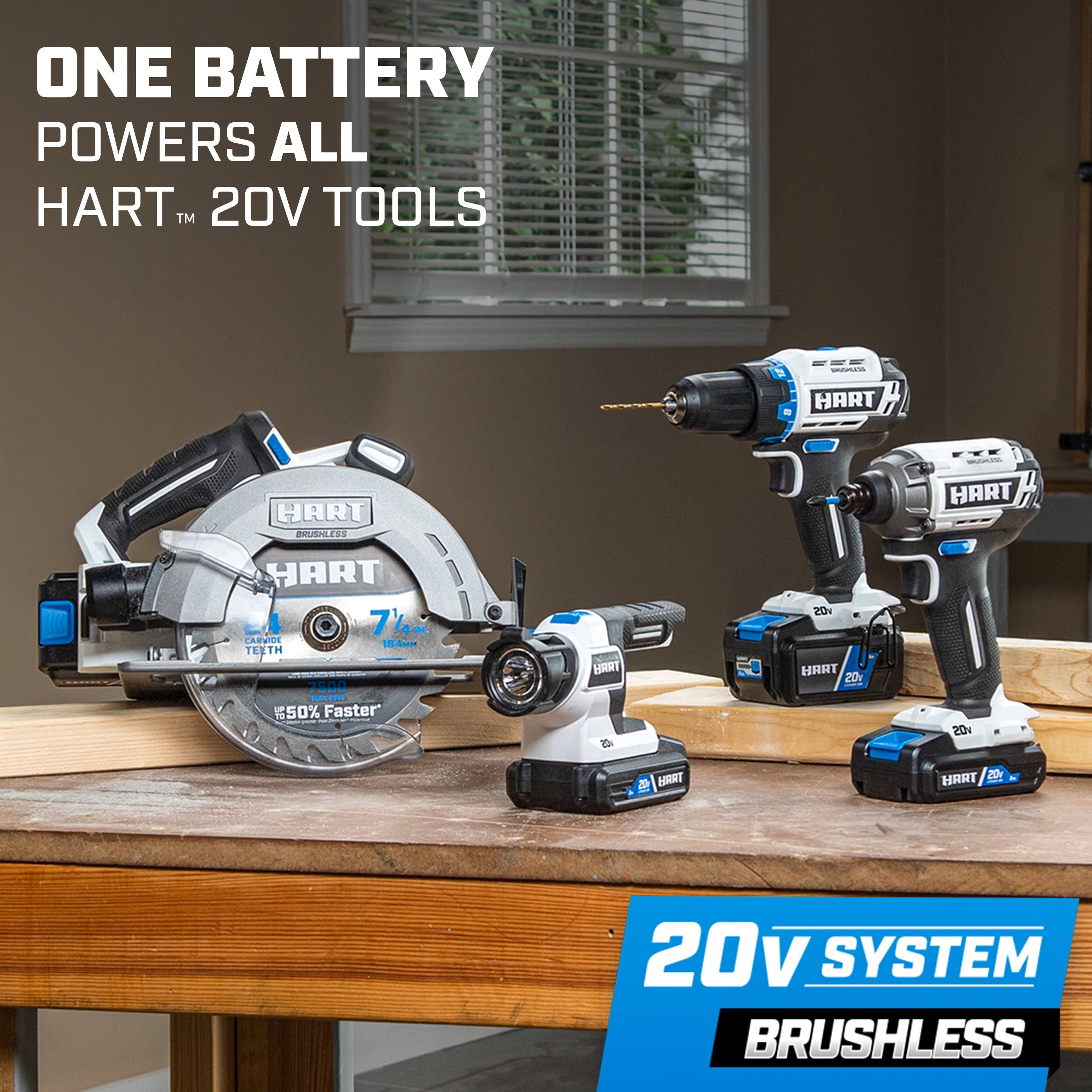 Hart 20-Volt Brushless 4-Tool Combo Kit (1) 20-Volt 2Ah Lithium-Ion Battery (1) 20-Volt 4Ah Lithium-Ion Battery