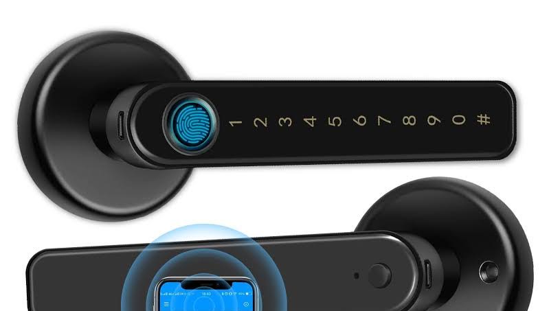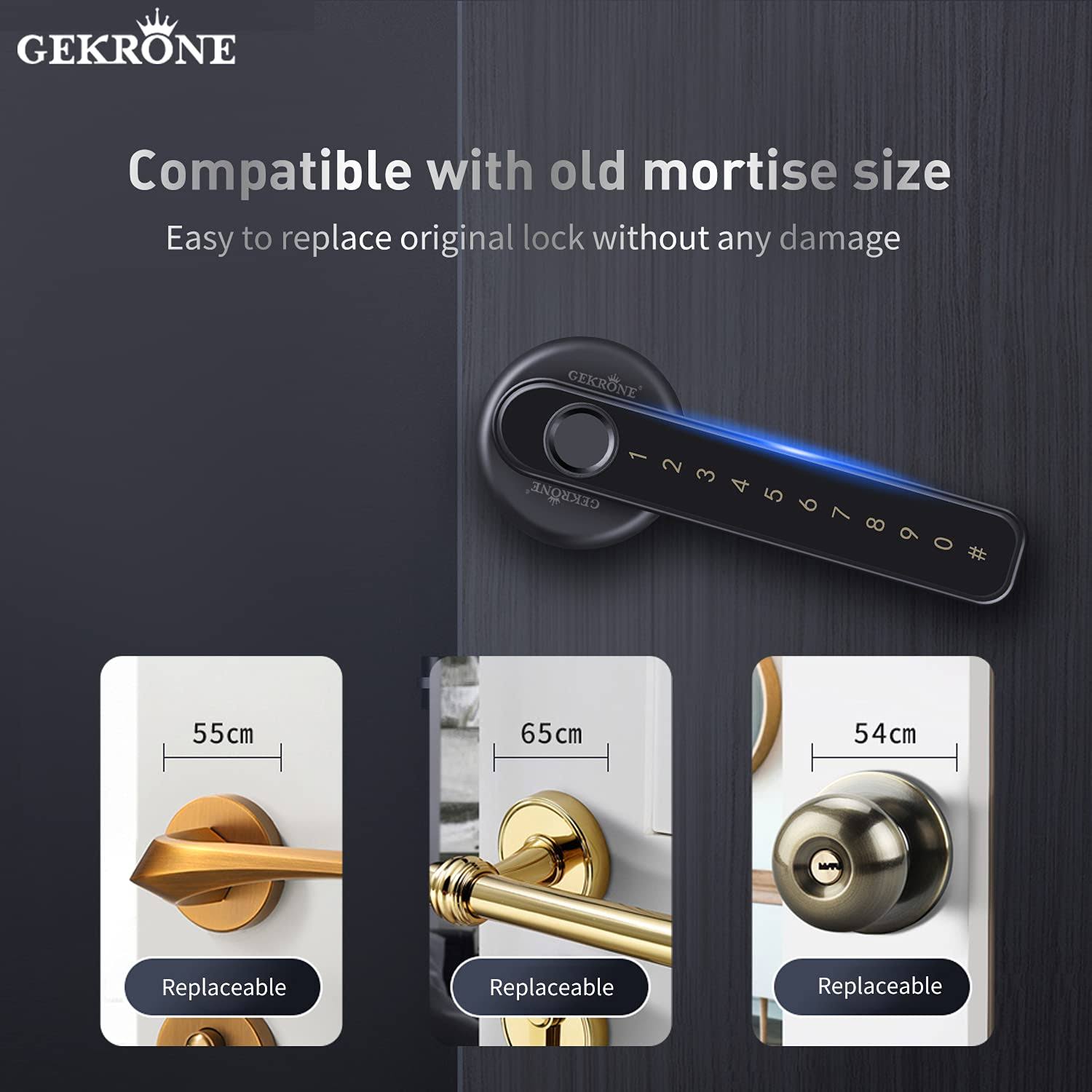 Gekrone Fingerprint Lock with Touchscreen Smart Room Door App Digital Lever Lock Keyless Entry Front Door Knob with Keypad Su