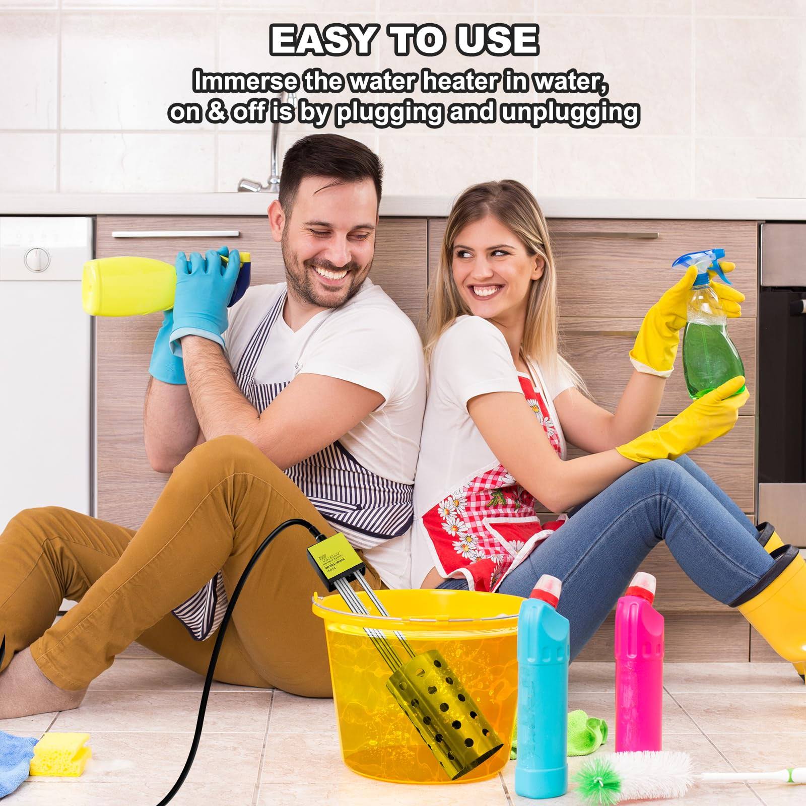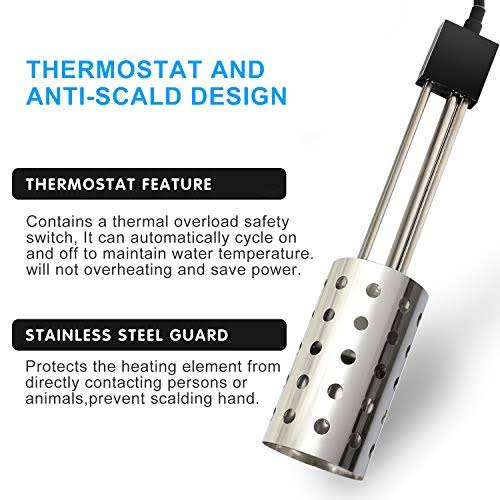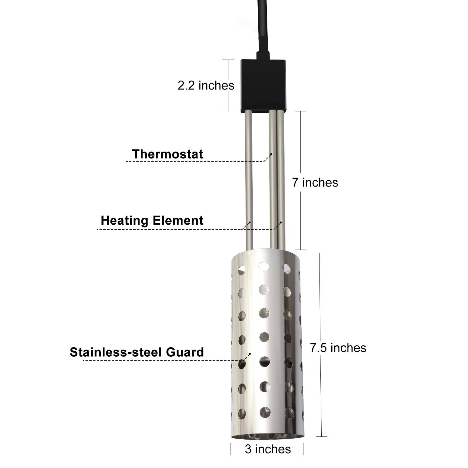 1500W Immersion Heater, Gesail UL-Listed Bucket Water Heater with 304 Stainless-Steel Guard, Submersible Bucket Heater with Thermostat and Auto